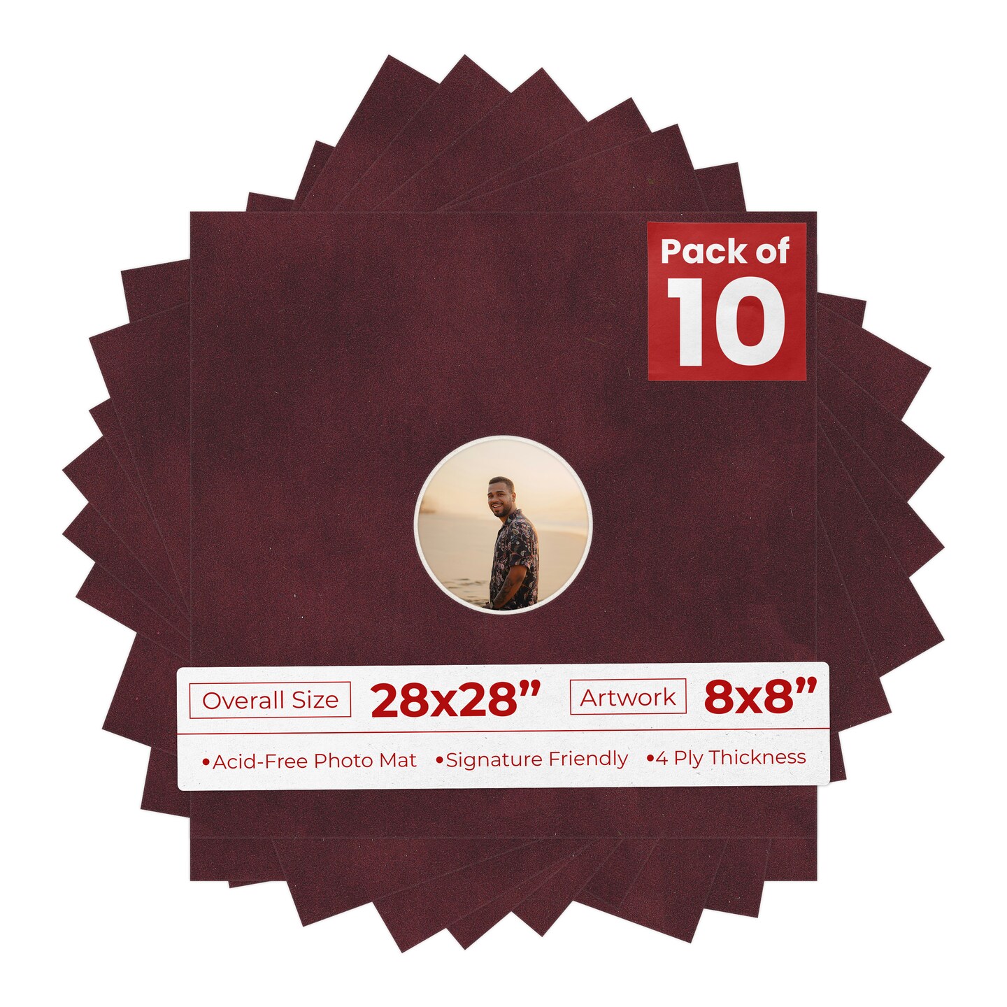 Dark Red Suede Mat Board for 28x28 Frames - Circle Opening for 8x8 Photos