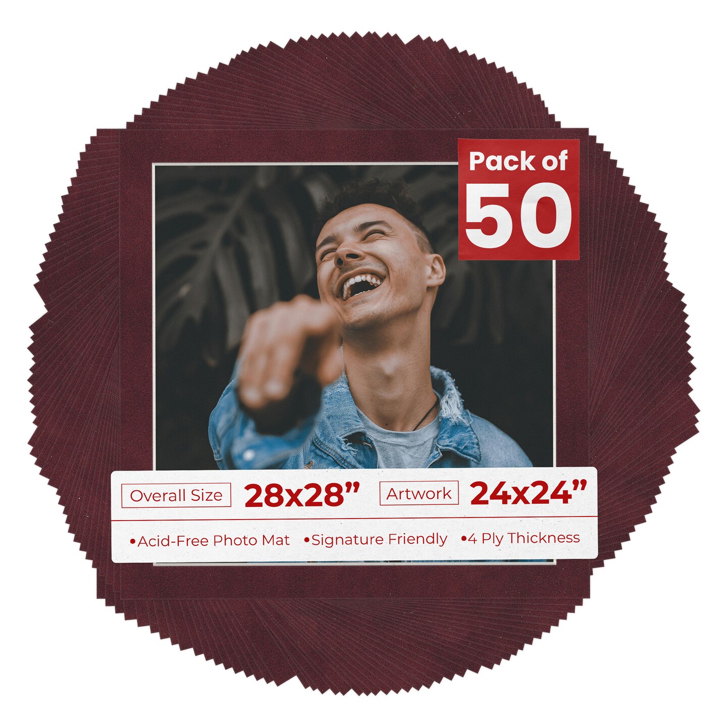 Dark Red Suede Mat Board for 28x28 Frames - Fits 24x24 Photos