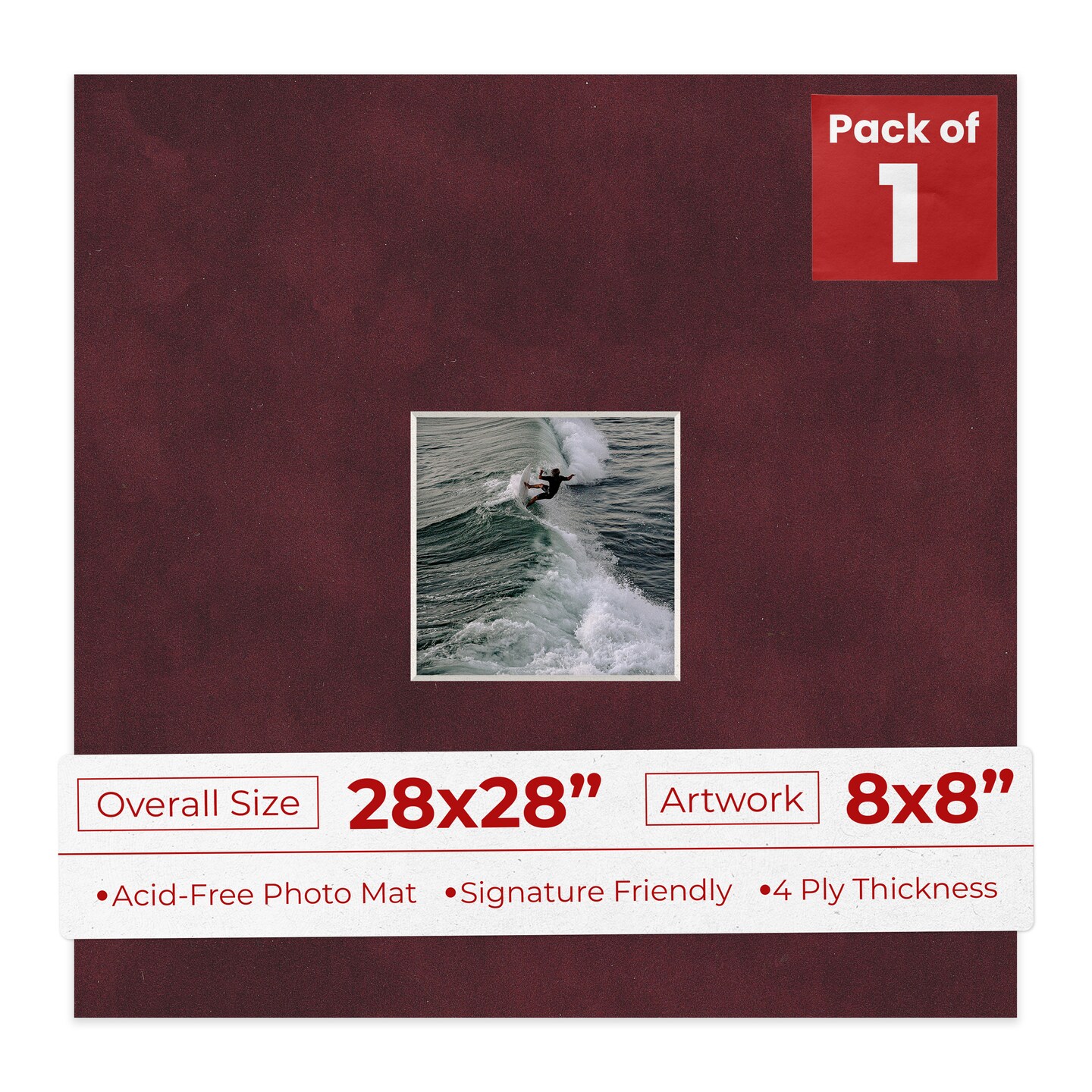 Dark Red Suede Mat Board for 28x28 Frames - Fits 8x8 Photos