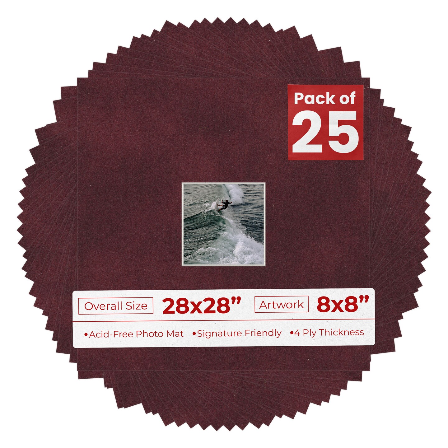 Dark Red Suede Mat Board for 28x28 Frames - Fits 8x8 Photos