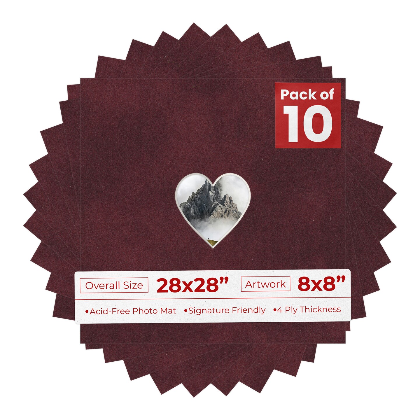Dark Red Suede Mat Board for 28x28 Frames - Heart Opening for 8x8 Photos