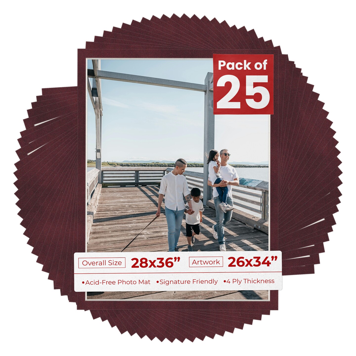 Dark Red Suede Mat Board for 28x36 Frames - Fits 26x34 Photos