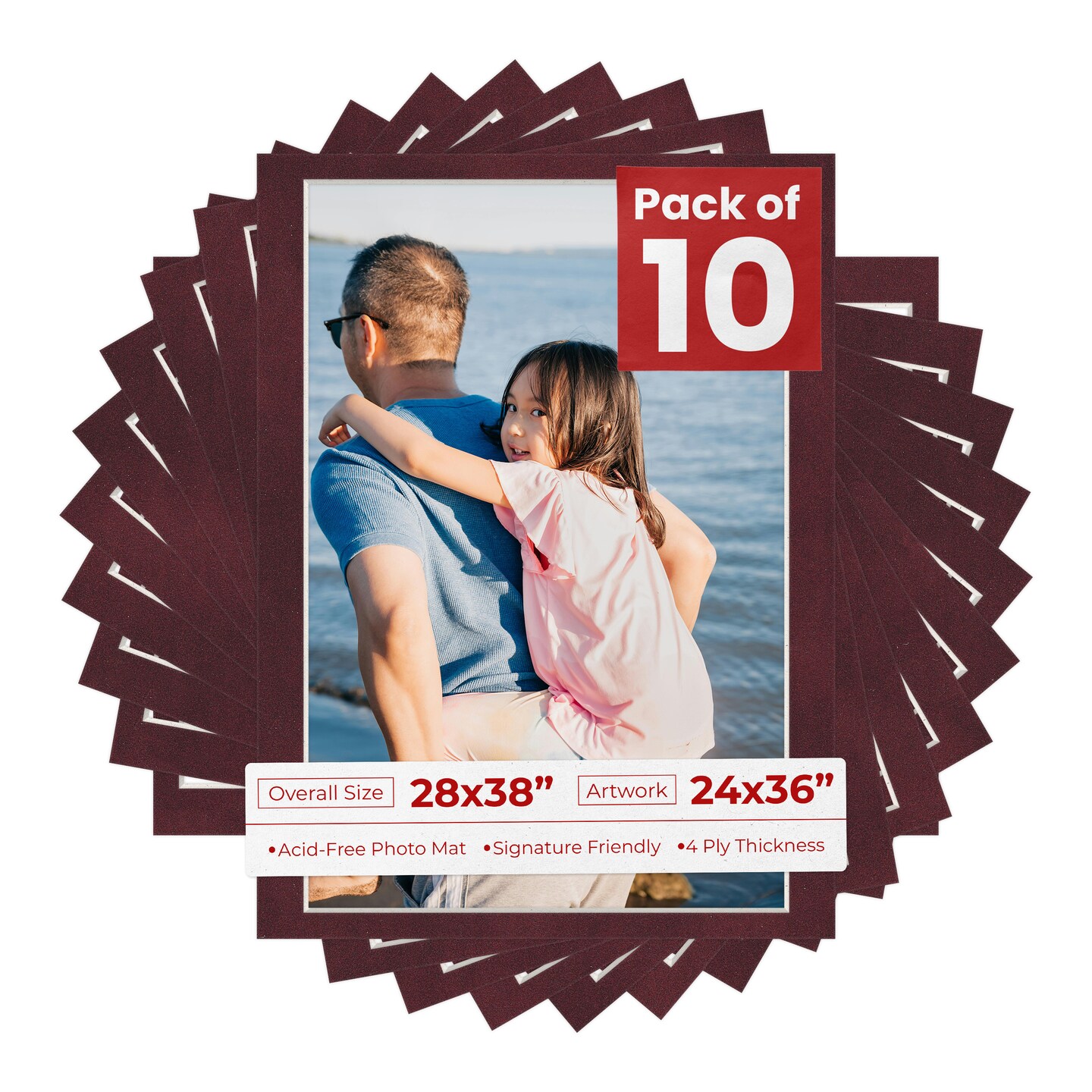 Dark Red Suede Mat Board for 28x38 Frames - Fits 24x36 Photos