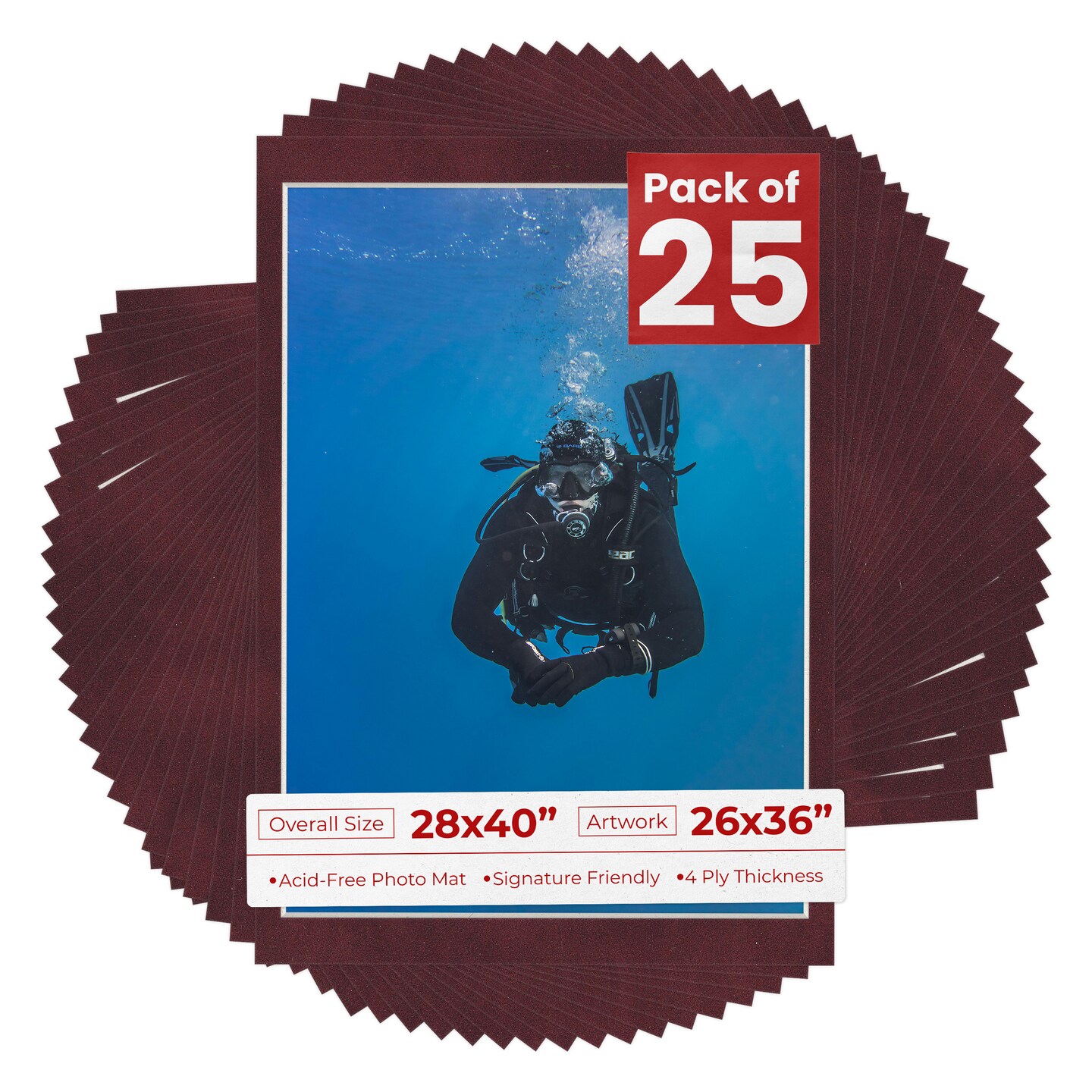 Dark Red Suede Mat Board for 28x40 Frames - Fits 26x36 Photos