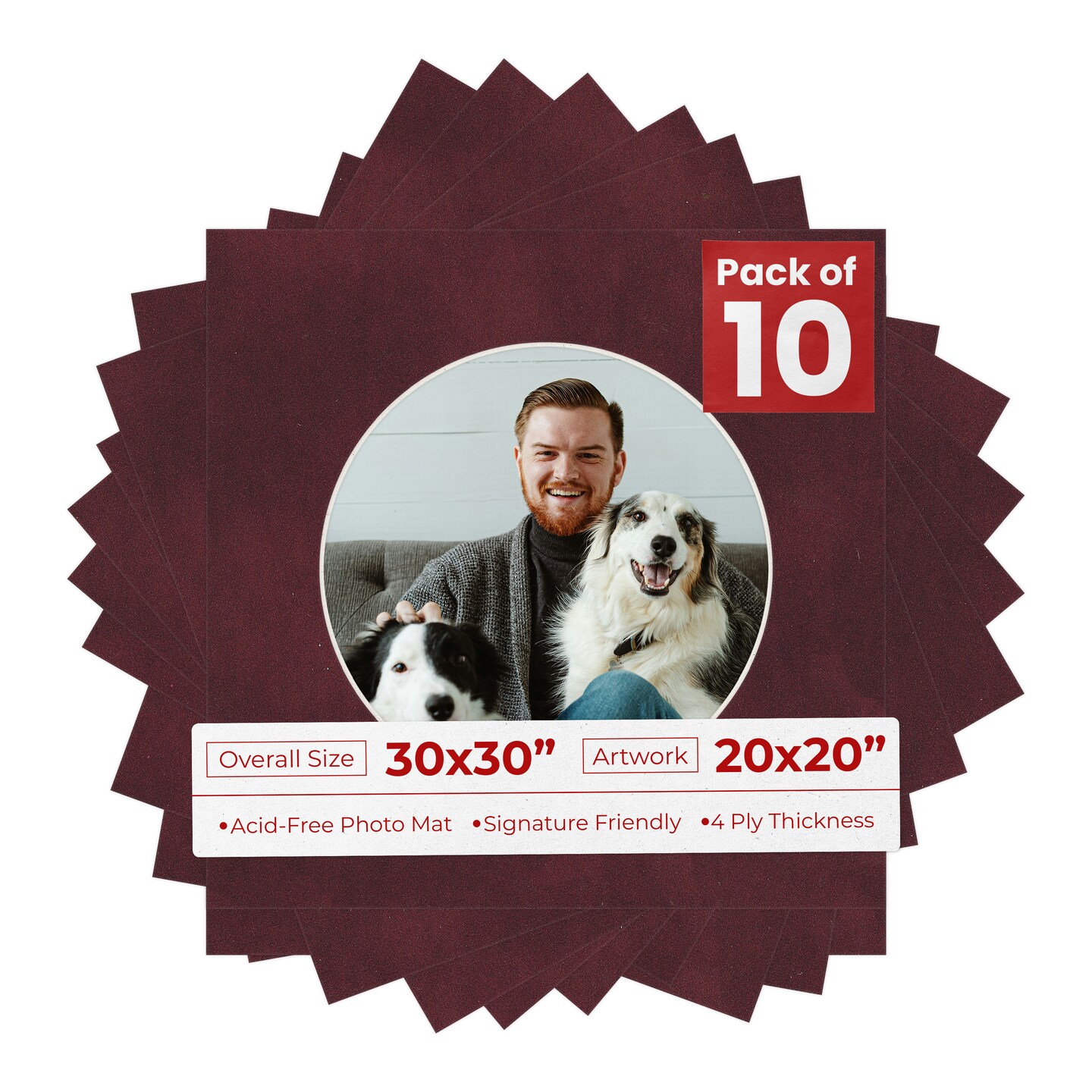 Dark Red Suede Mat Board for 30x30 Frames - Circle Opening for 20x20 Photos