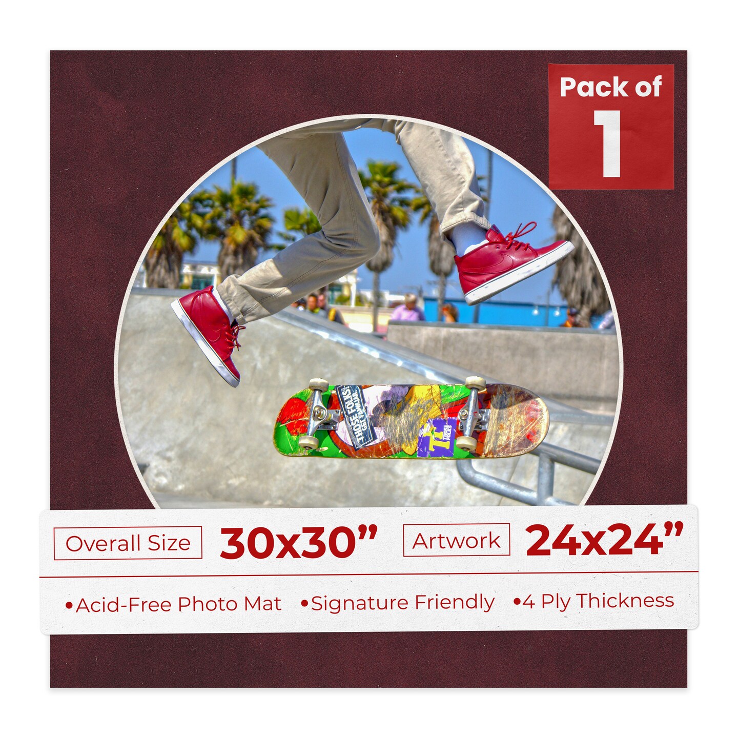 Dark Red Suede Mat Board for 30x30 Frames - Circle Opening for 24x24 Photos