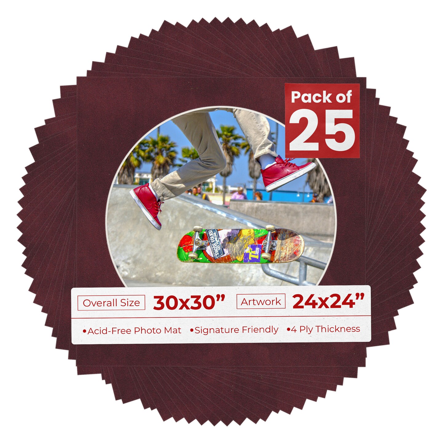 Dark Red Suede Mat Board for 30x30 Frames - Circle Opening for 24x24 Photos