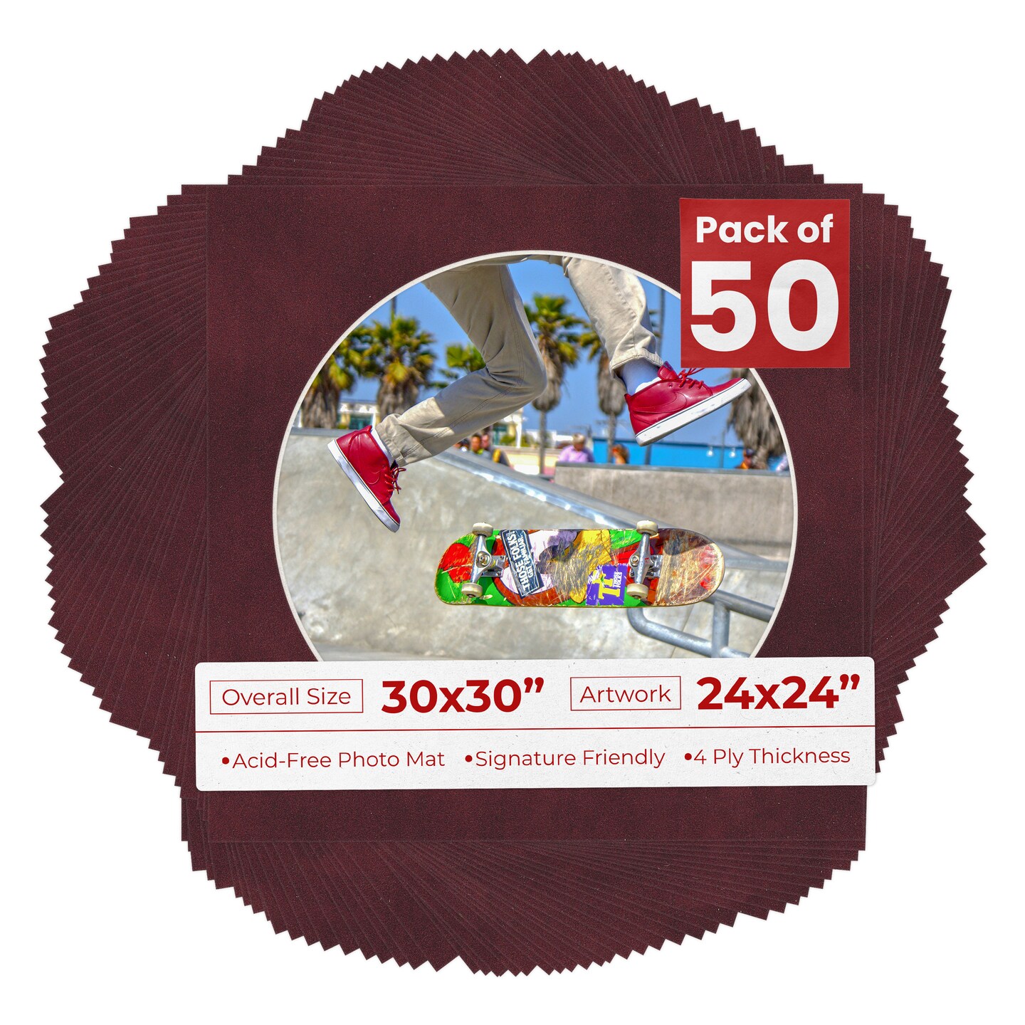 Dark Red Suede Mat Board for 30x30 Frames - Circle Opening for 24x24 Photos
