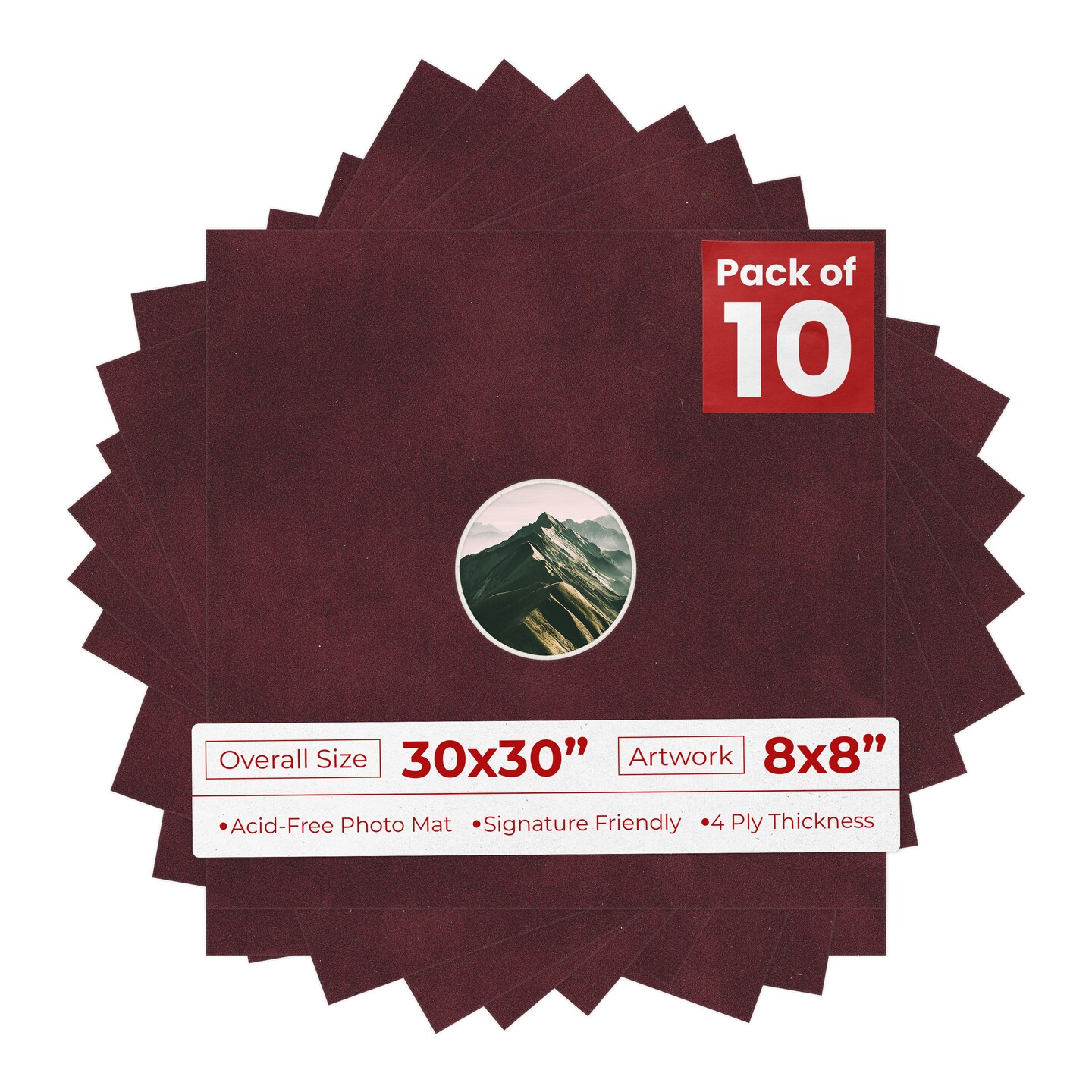 Dark Red Suede Mat Board for 30x30 Frames - Circle Opening for 8x8 Photos