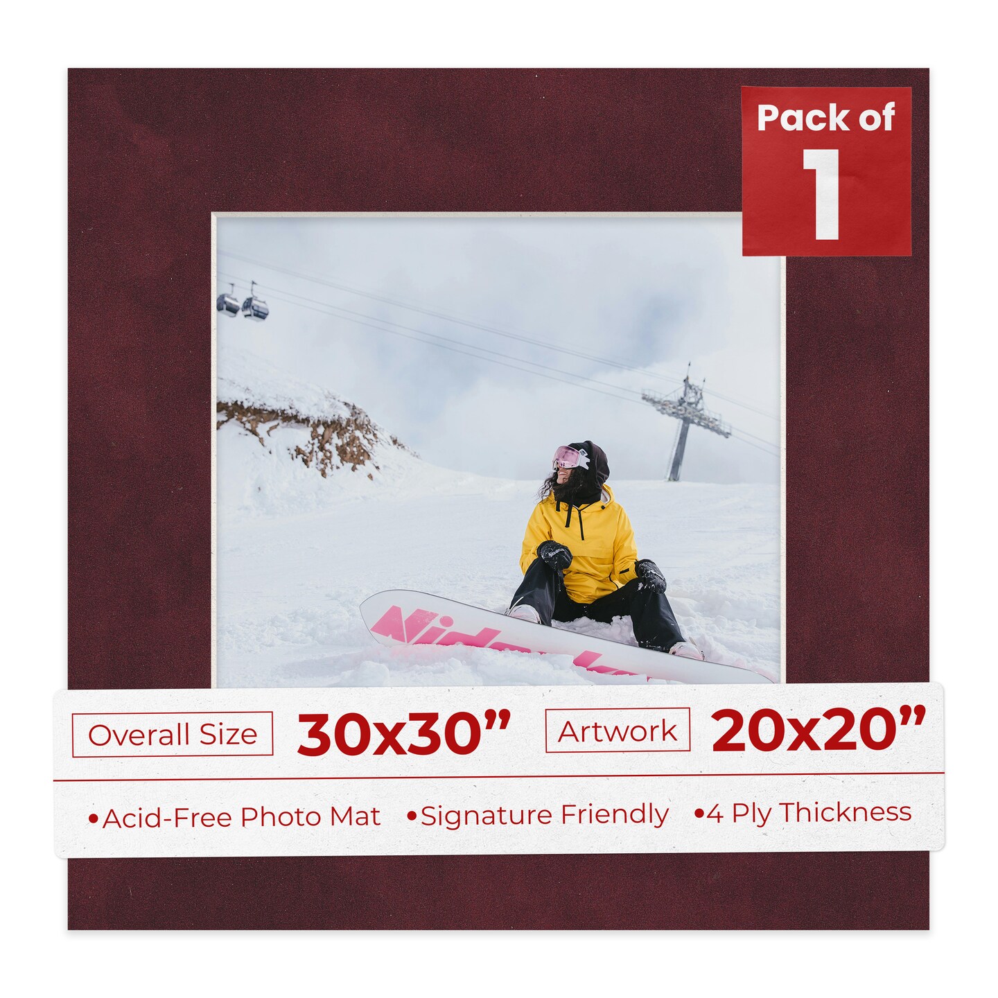 Dark Red Suede Mat Board for 30x30 Frames - Fits 20x20 Photos