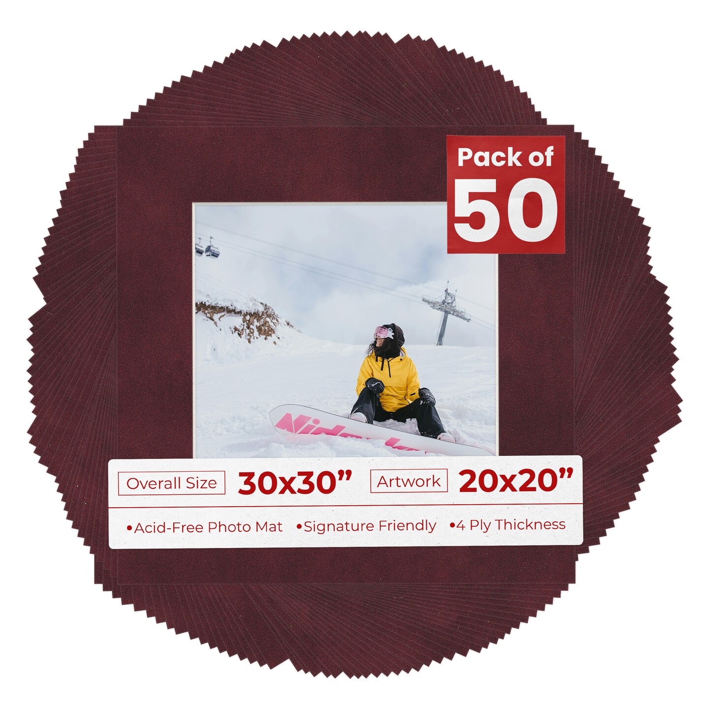 Dark Red Suede Mat Board for 30x30 Frames - Fits 20x20 Photos