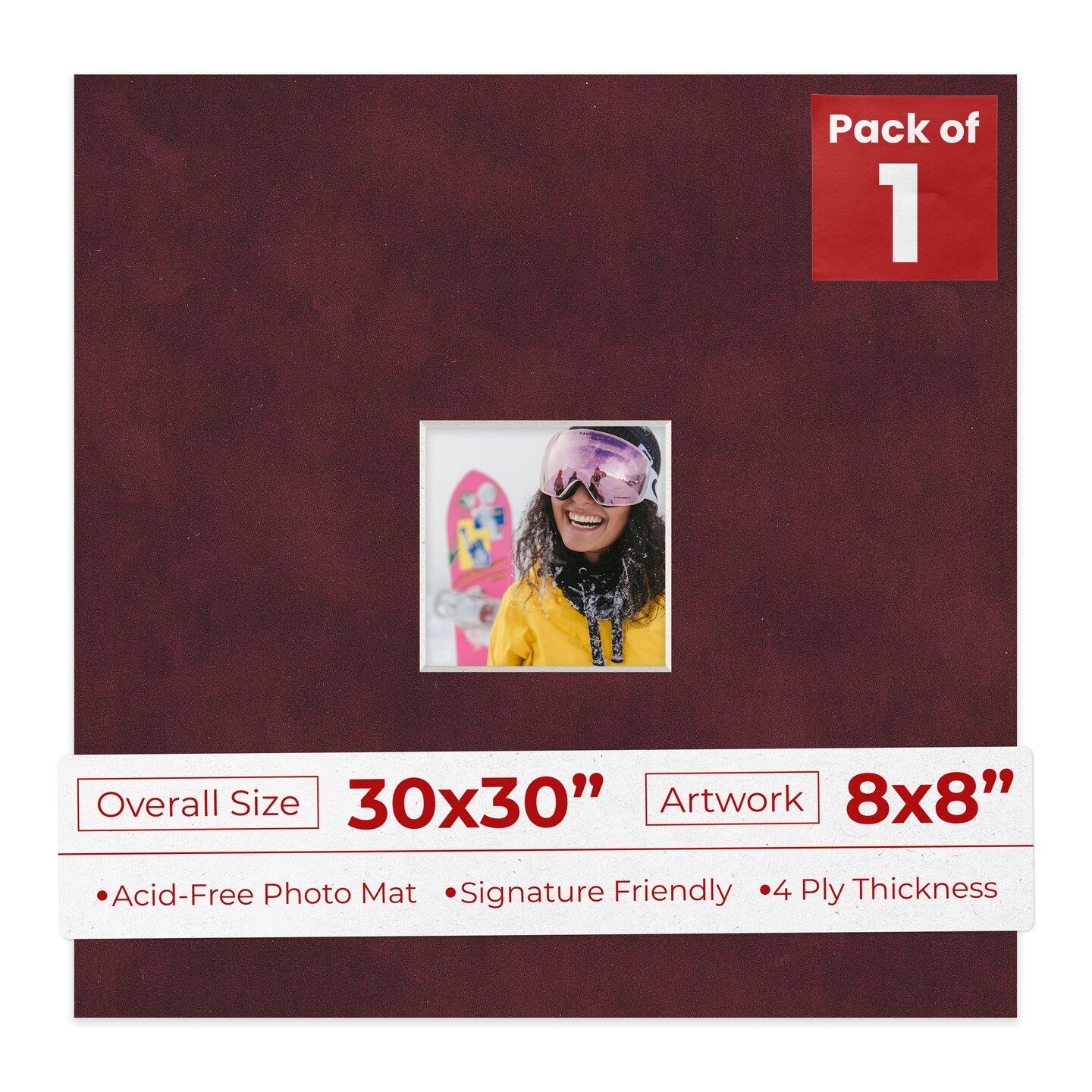 Dark Red Suede Mat Board for 30x30 Frames - Fits 8x8 Photos