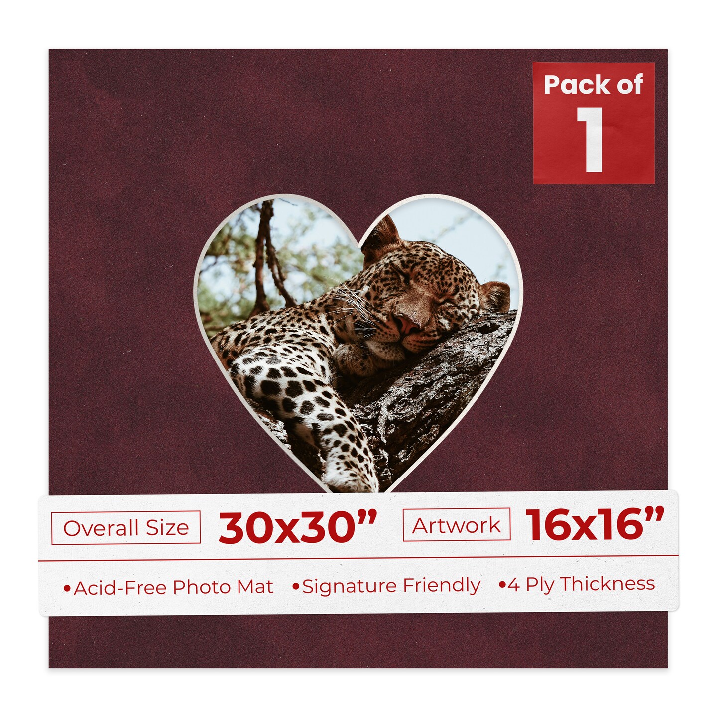 Dark Red Suede Mat Board for 30x30 Frames - Heart Opening for 16x16 Photos
