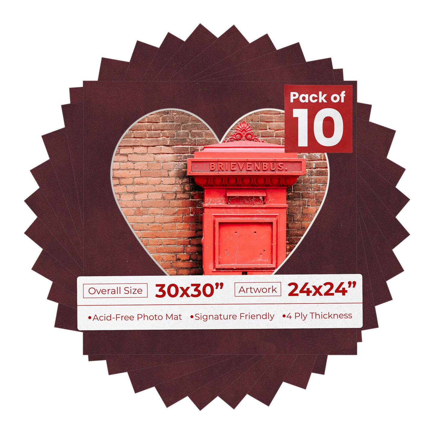 Dark Red Suede Mat Board for 30x30 Frames - Heart Opening for 24x24 Photos