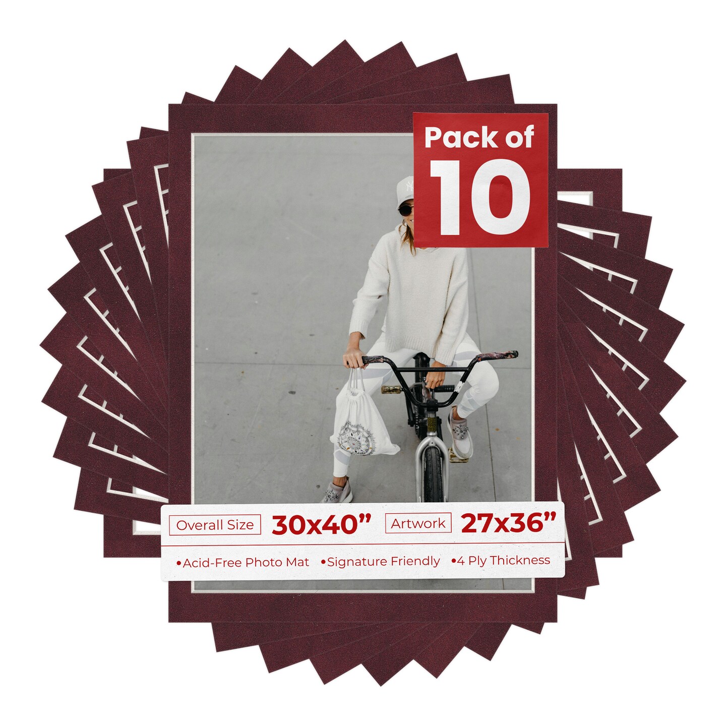 Dark Red Suede Mat Board for 30x40 Frames - Fits 27x36 Photos