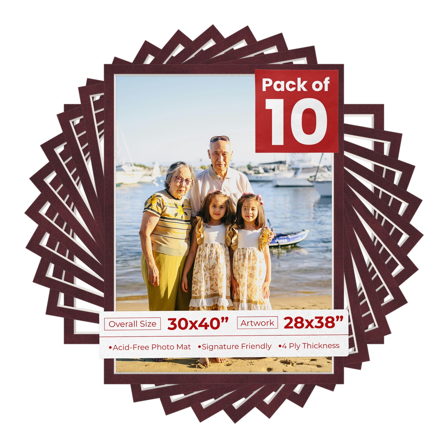 Dark Red Suede Mat Board for 30x40 Frames - Fits 28x38 Photos