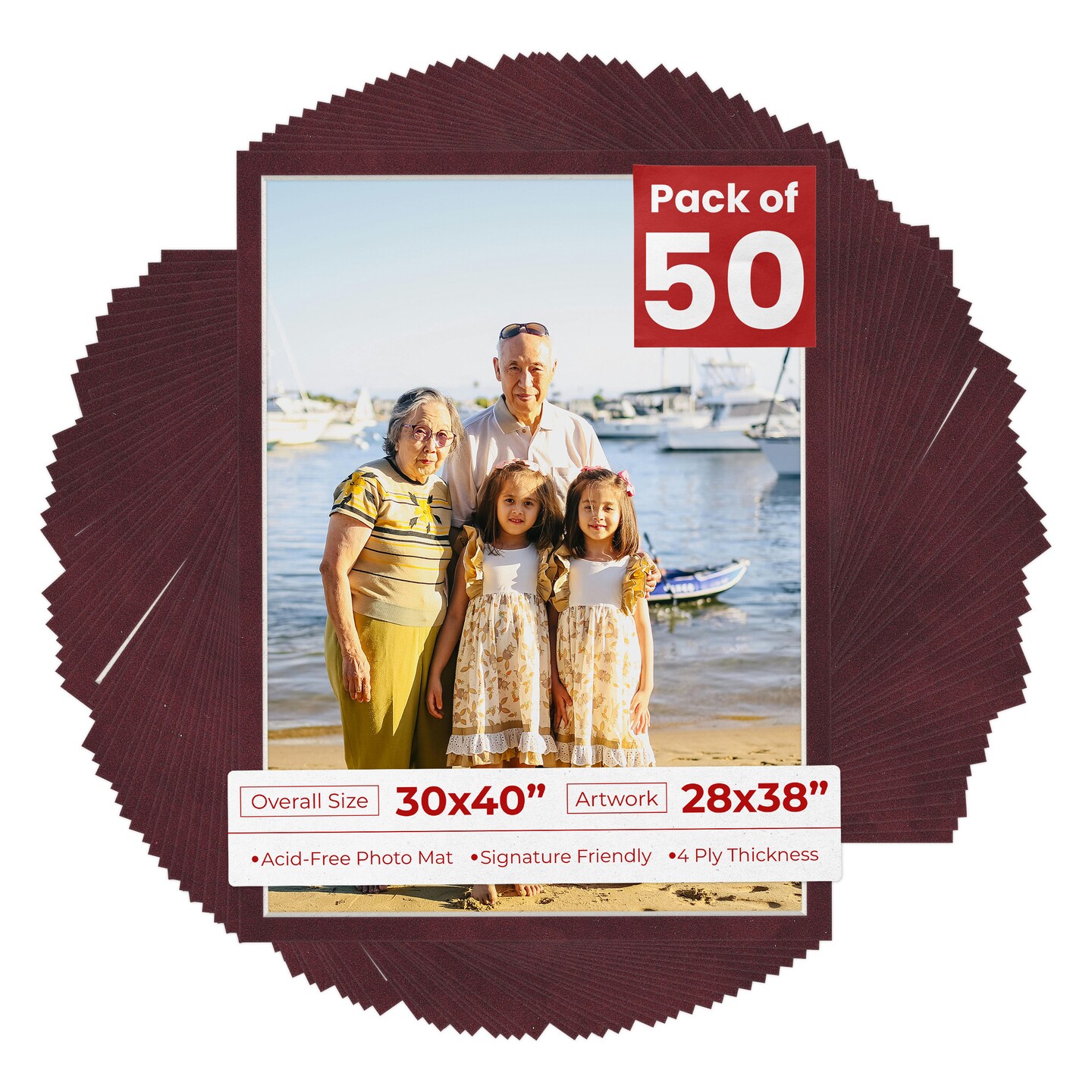 Dark Red Suede Mat Board for 30x40 Frames - Fits 28x38 Photos