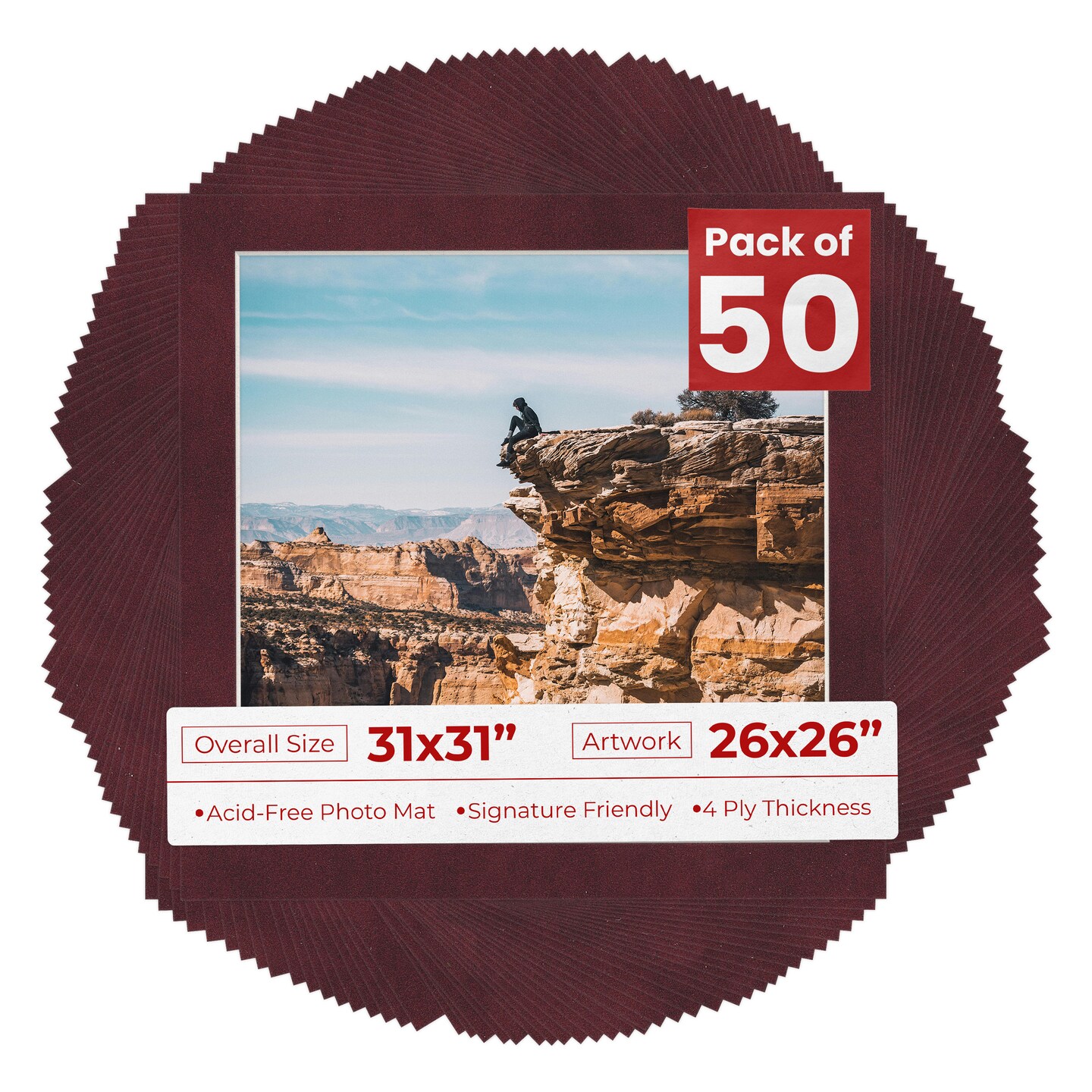 Dark Red Suede Mat Board for 31x31 Frames - Fits 26x26 Photos