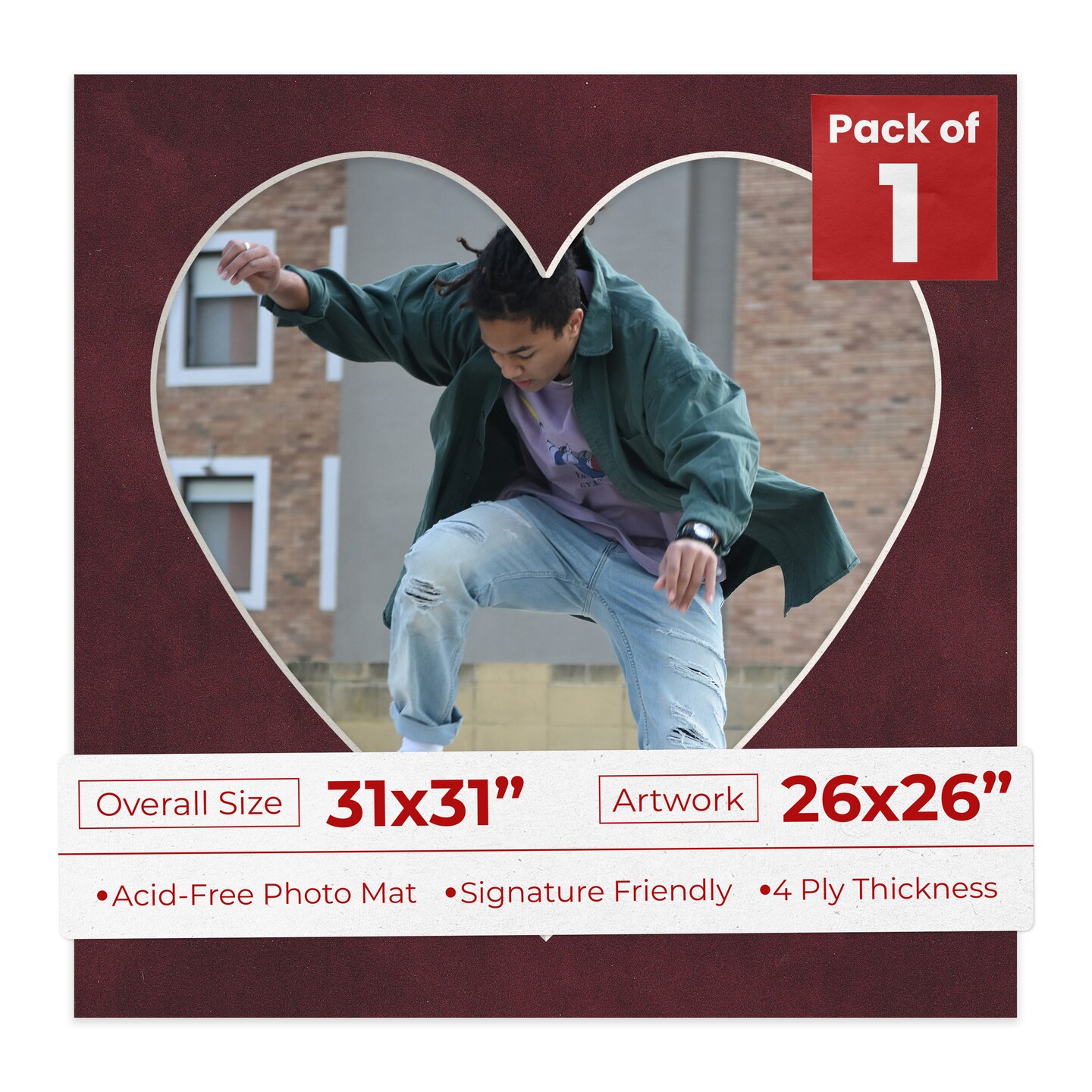 Dark Red Suede Mat Board for 31x31 Frames - Heart Opening for 26x26 Photos
