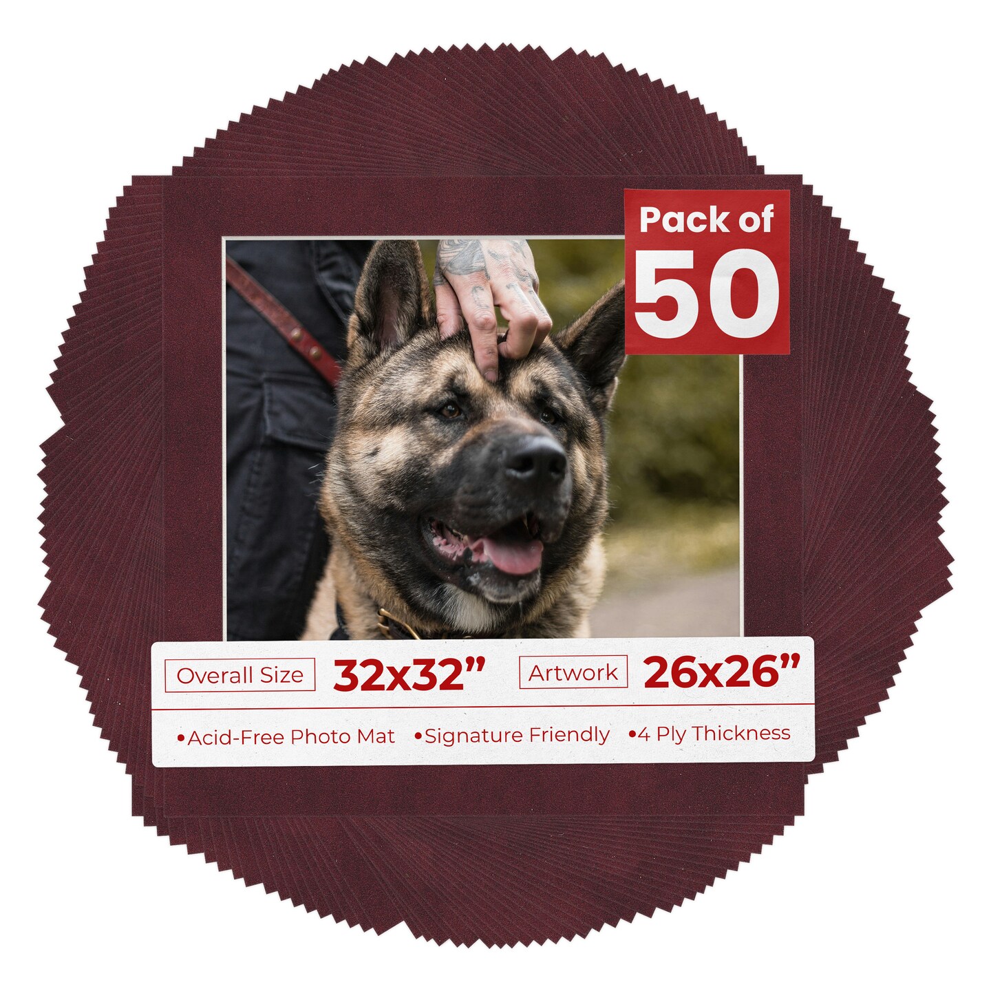 Dark Red Suede Mat Board for 32x32 Frames - Fits 26x26 Photos