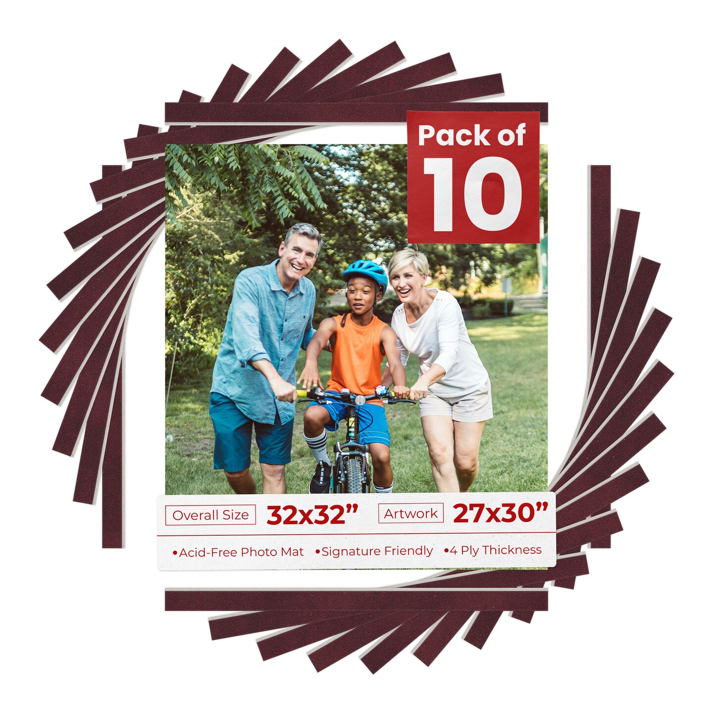 Dark Red Suede Mat Board for 32x32 Frames - Fits 27x30 Photos