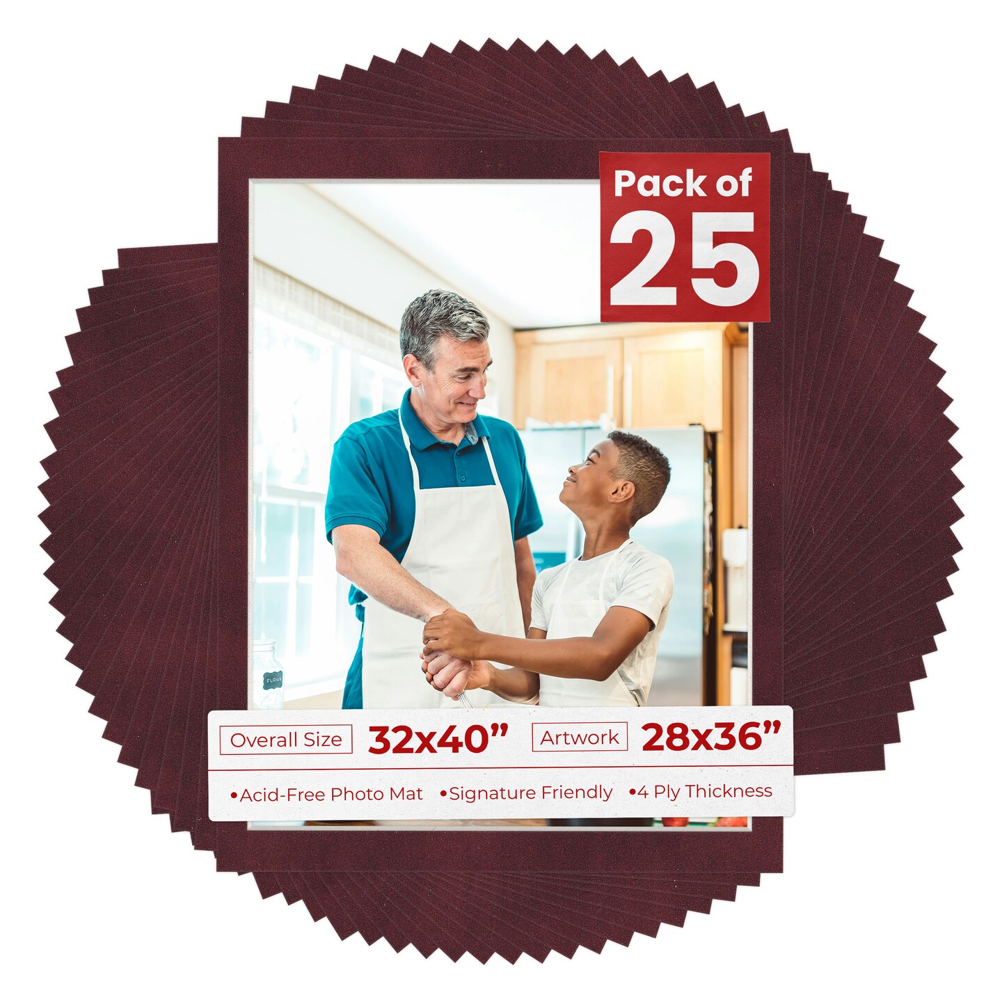 Dark Red Suede Mat Board for 32x40 Frames - Fits 28x36 Photos