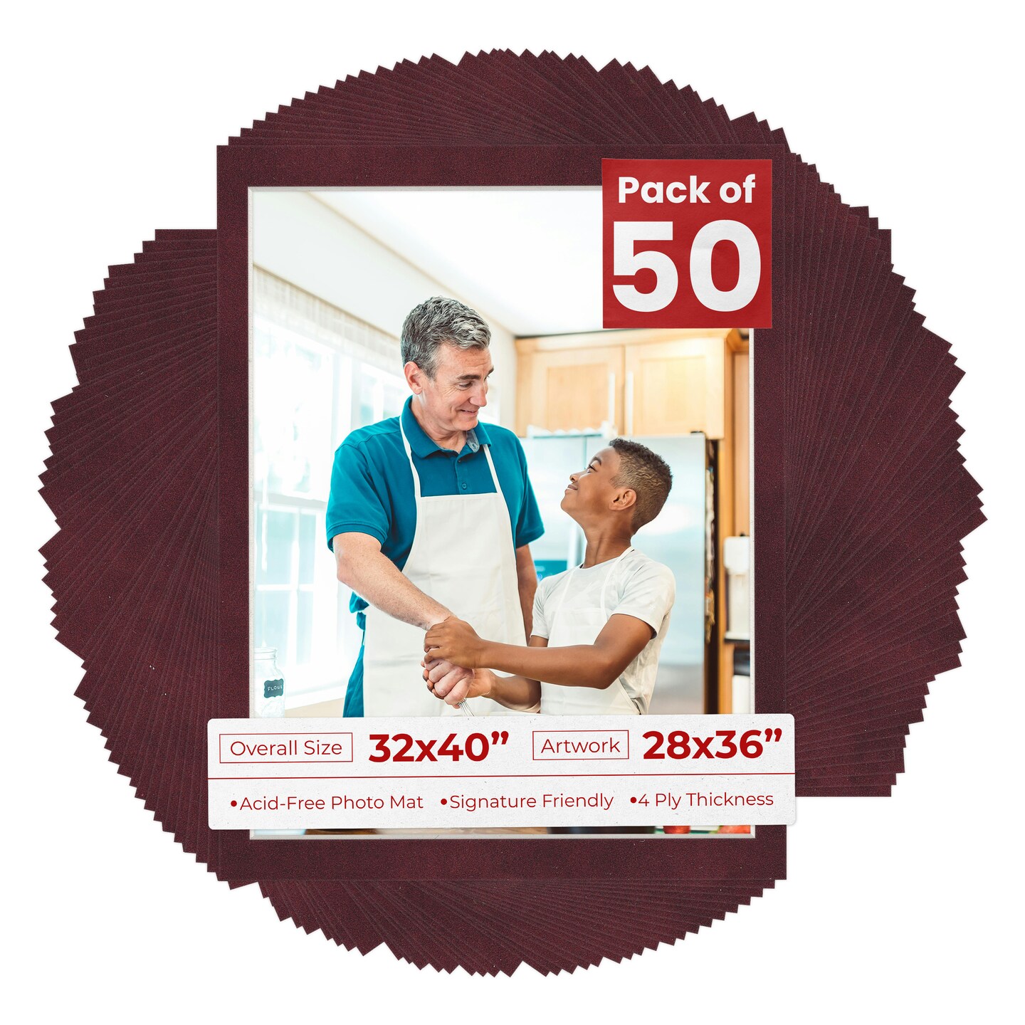 Dark Red Suede Mat Board for 32x40 Frames - Fits 28x36 Photos