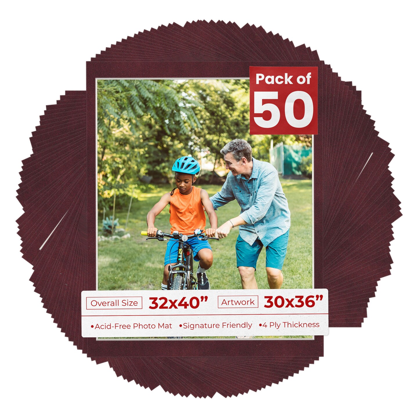 Dark Red Suede Mat Board for 32x40 Frames - Fits 30x36 Photos