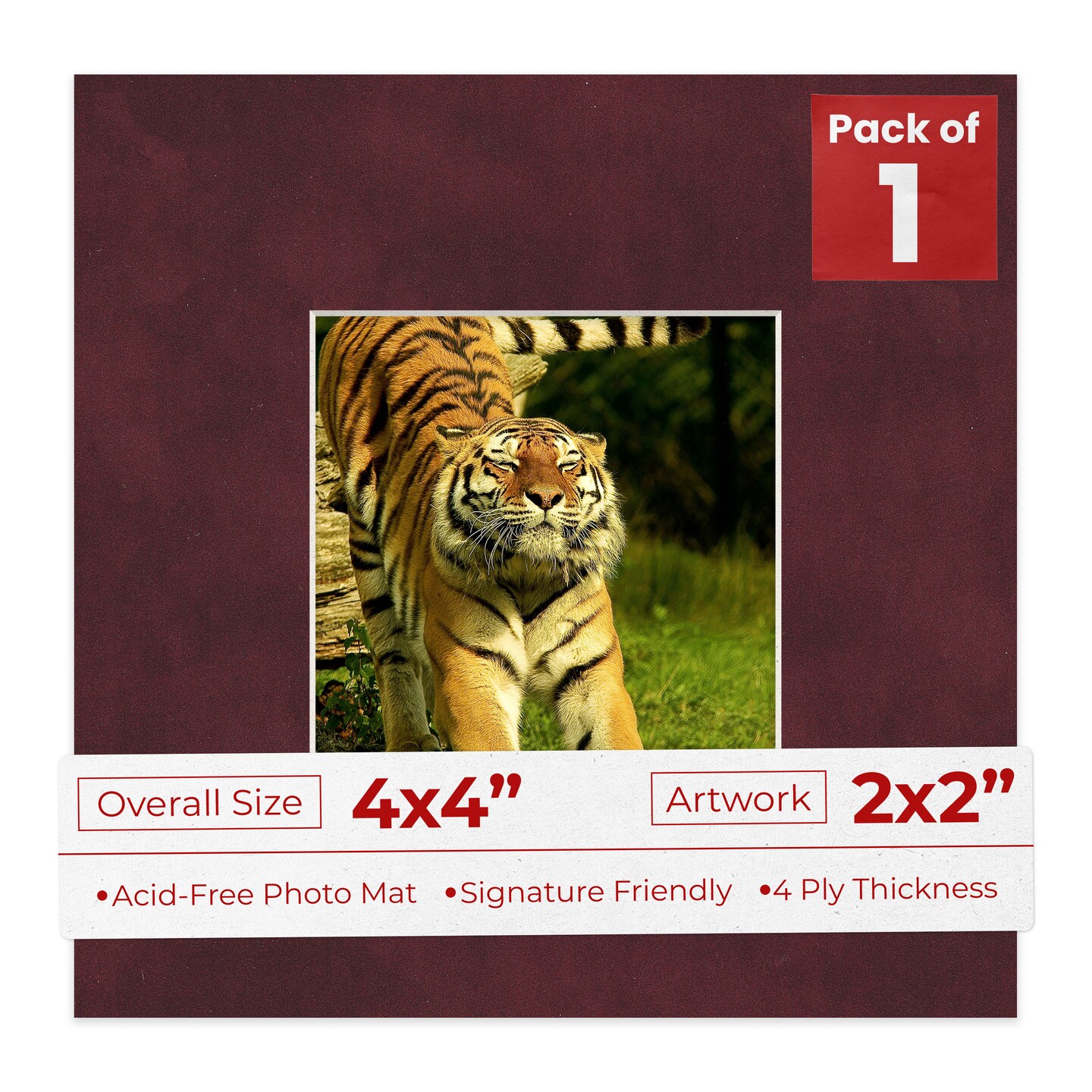 Dark Red Suede Mat Board for 4x4 Inch Frames - Fits 2x2 Photos