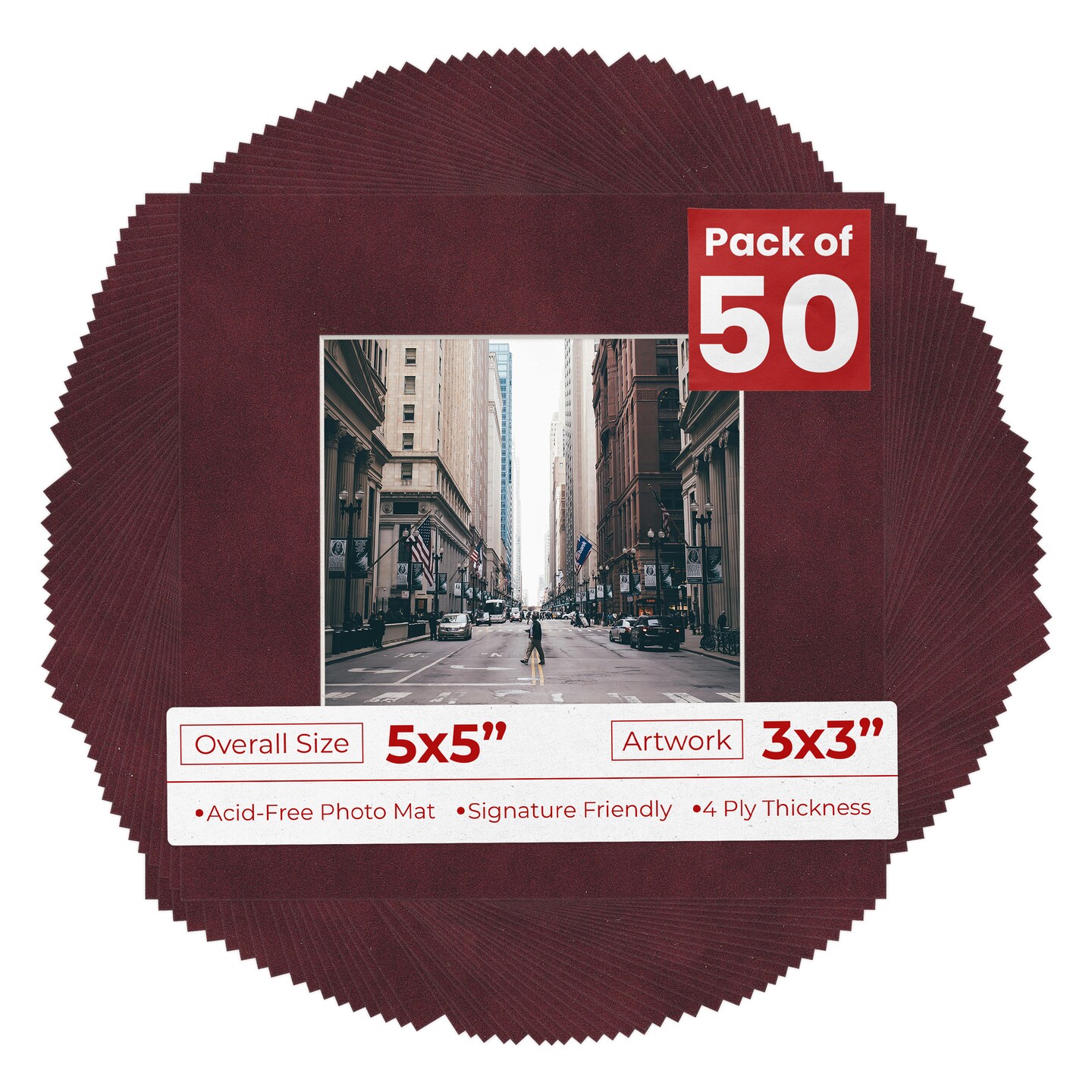 Dark Red Suede Mat Board for 5x5 Inch Frames - Fits 3x3 Photos