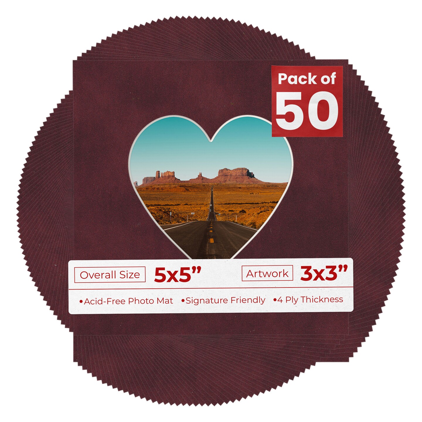 Dark Red Suede Mat Board for 5x5 Inch Frames - Heart Opening for 3x3 Photos