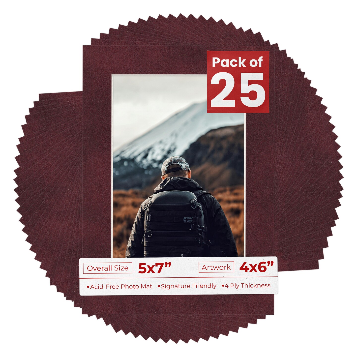 Dark Red Suede Mat Board for 5x7 Frames - Fits 4x6 Photos