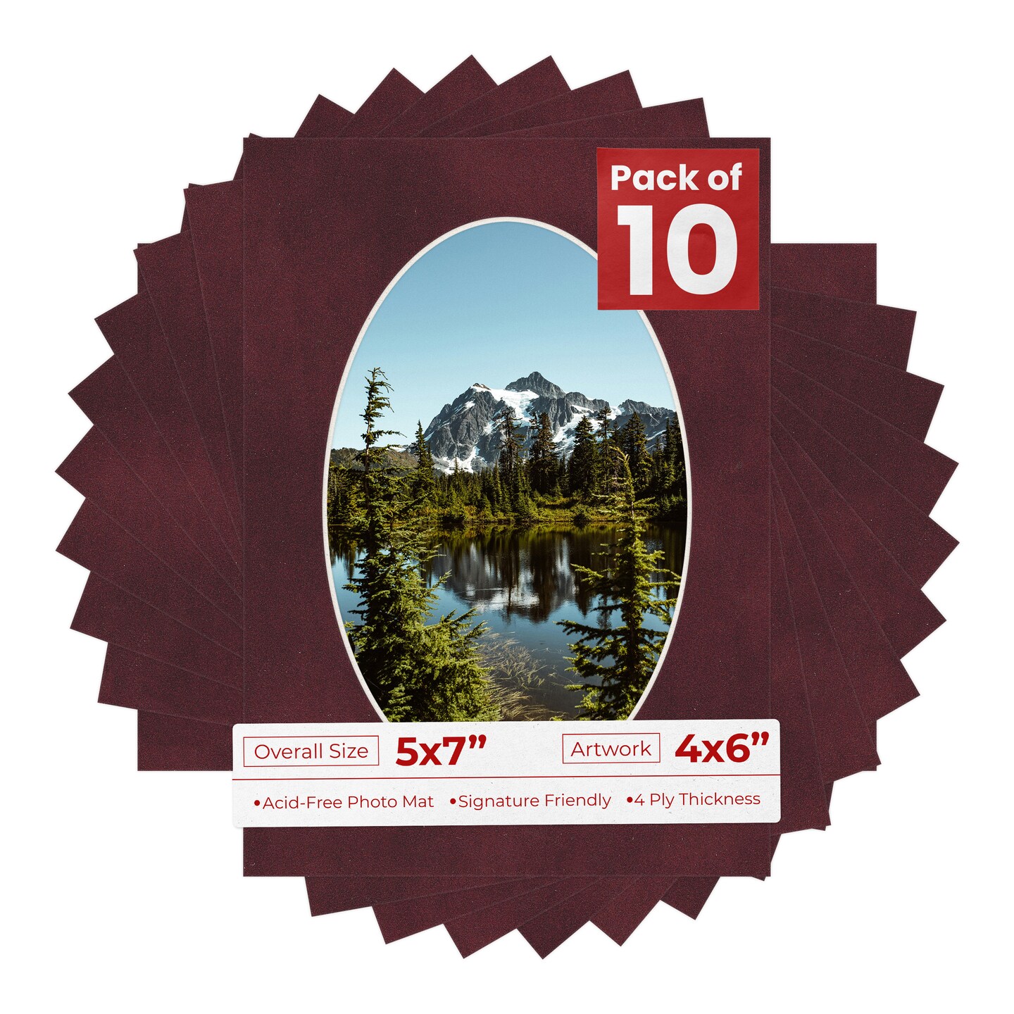 Dark Red Suede Mat Board for 5x7 Frames - Oval Opening for 4x6 Photos