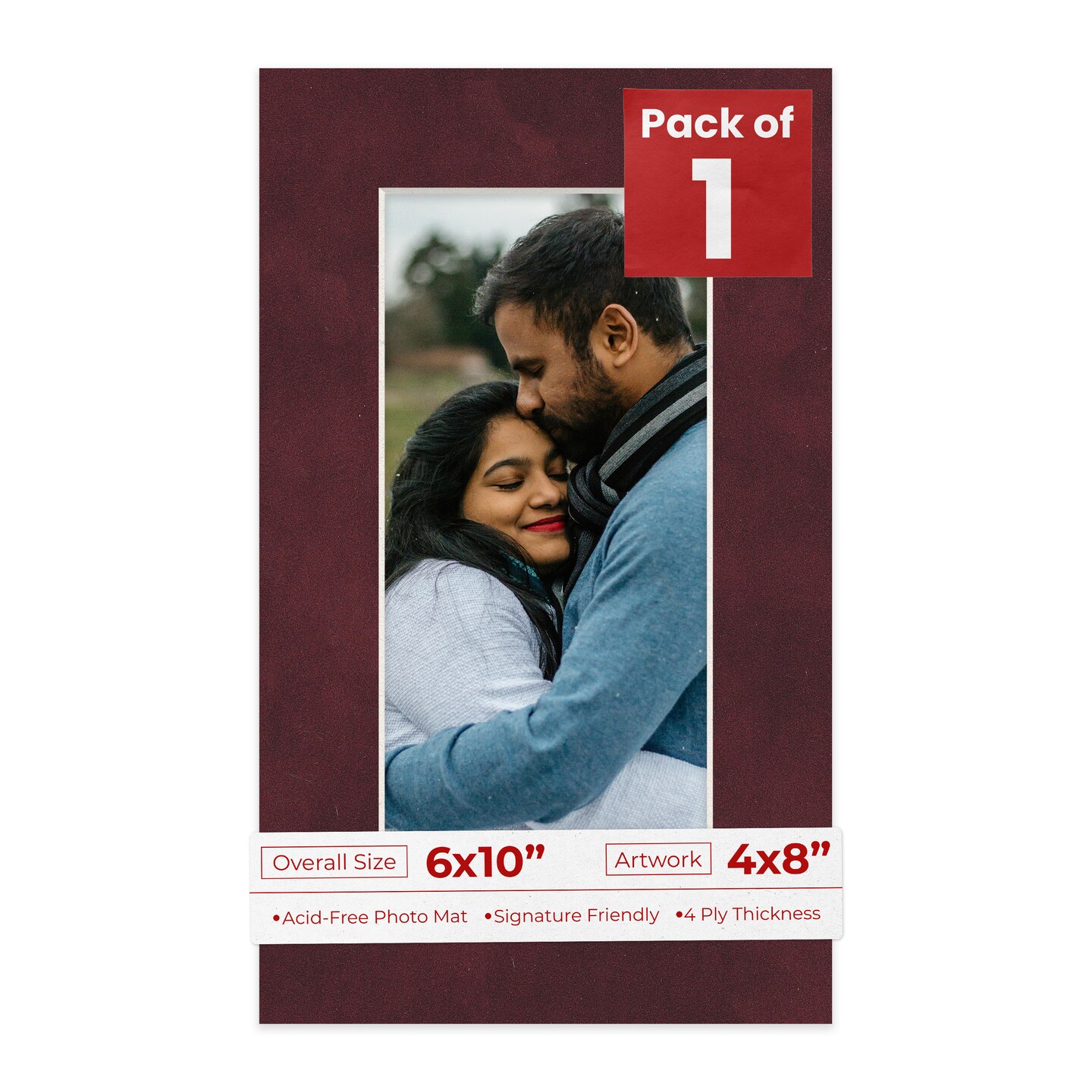 Dark Red Suede Mat Board for 6x10 Frames - Fits 4x8 Photos