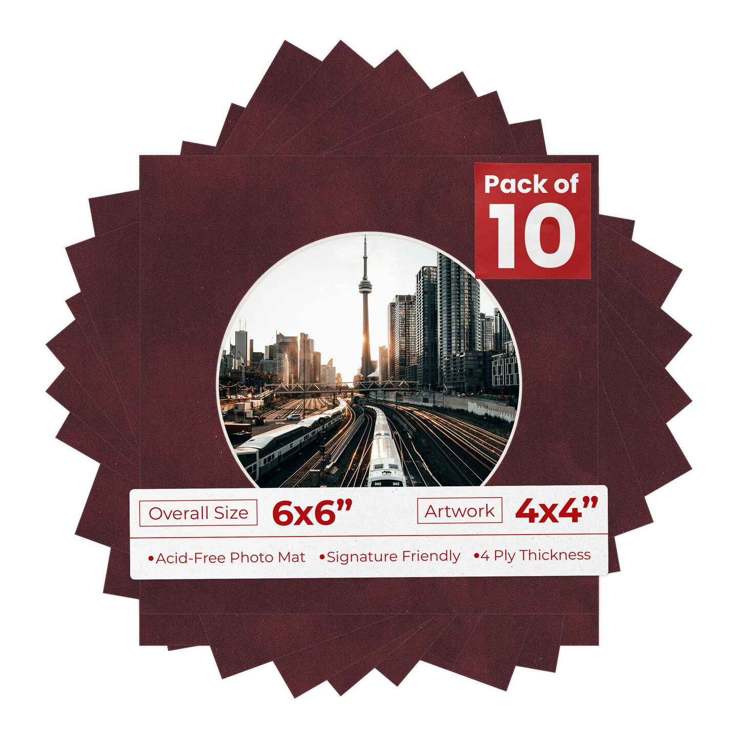 Dark Red Suede Mat Board for 6x6 Frames - Circle Opening for 4x4 Photos