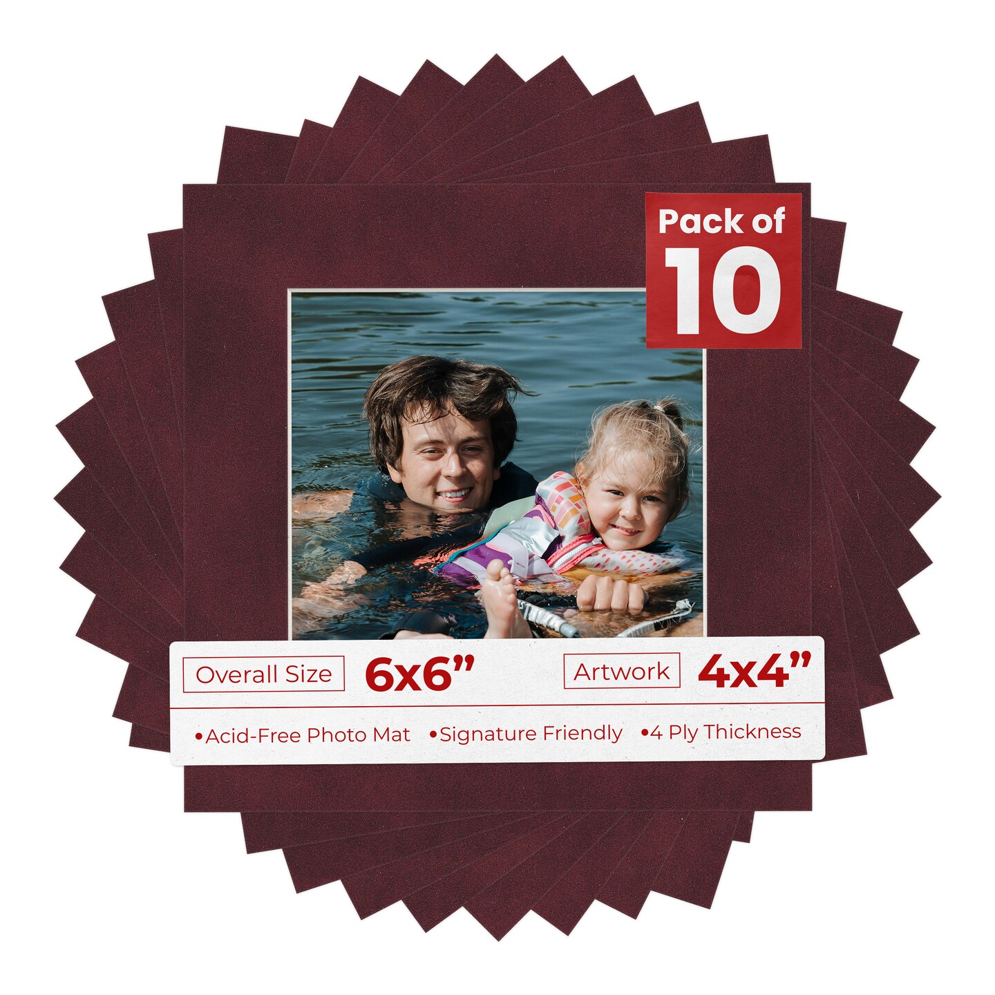 Dark Red Suede Mat Board for 6x6 Frames - Fits 4x4 Photos