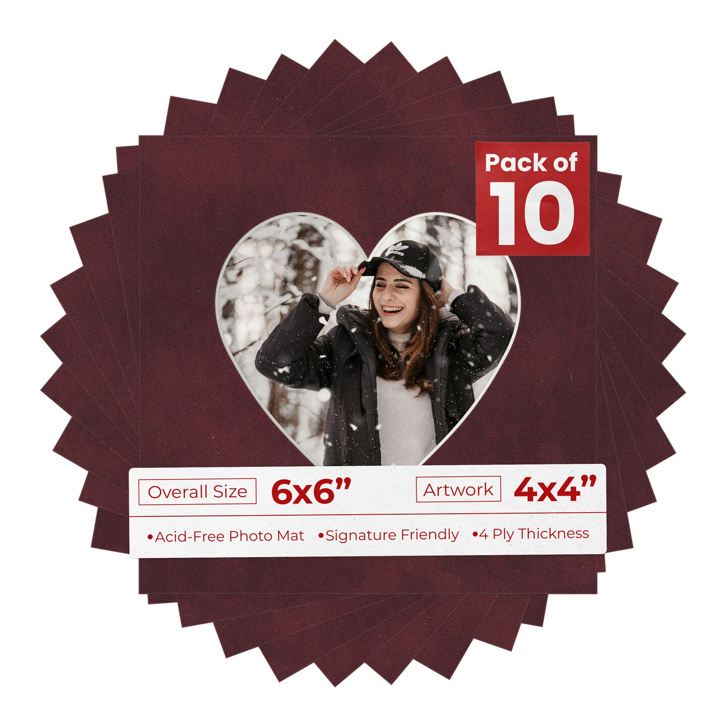 Dark Red Suede Mat Board for 6x6 Frames - Heart Opening for 4x4 Photos