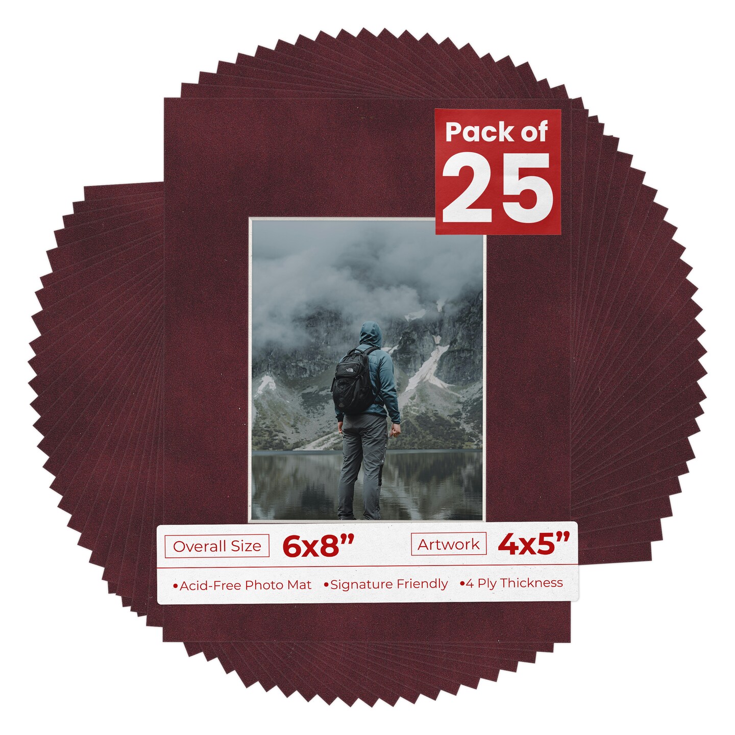 Dark Red Suede Mat Board for 6x8 Frames - Fits 4x5 Photos