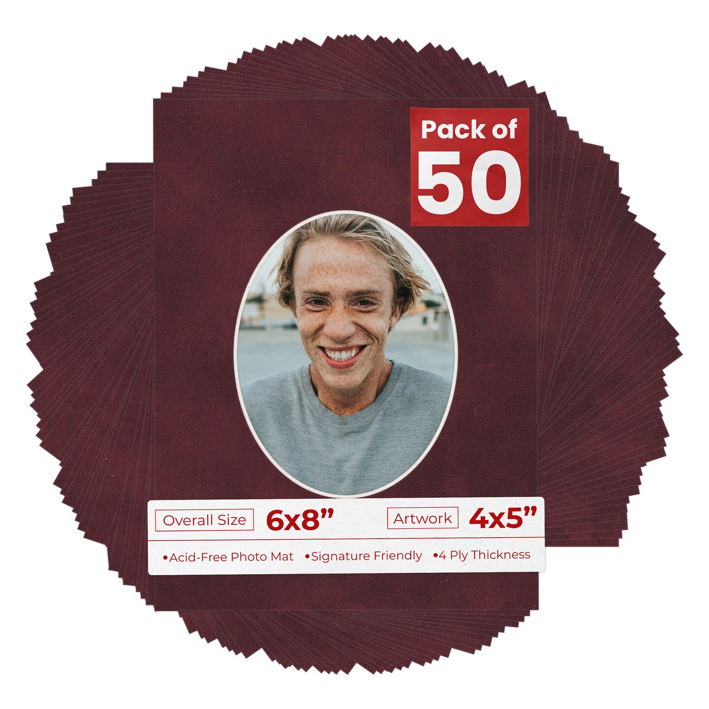 Dark Red Suede Mat Board for 6x8 Frames - Oval Opening for 4x5 Photos
