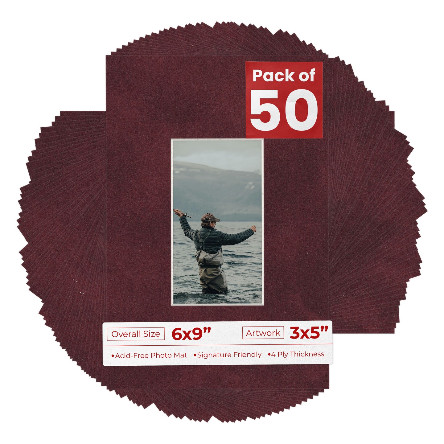 Dark Red Suede Mat Board for 6x9 Frames - Fits 3x5 Photos