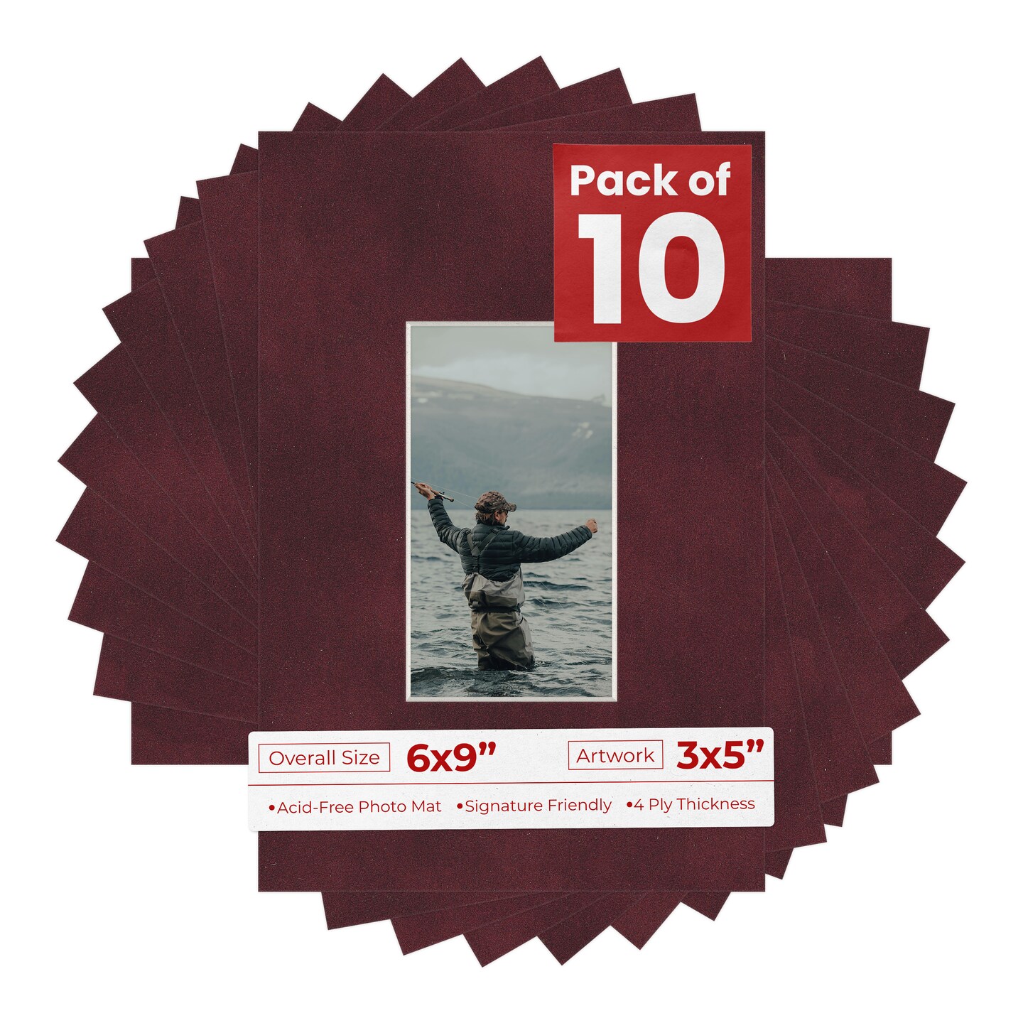 Dark Red Suede Mat Board for 6x9 Frames - Fits 3x5 Photos