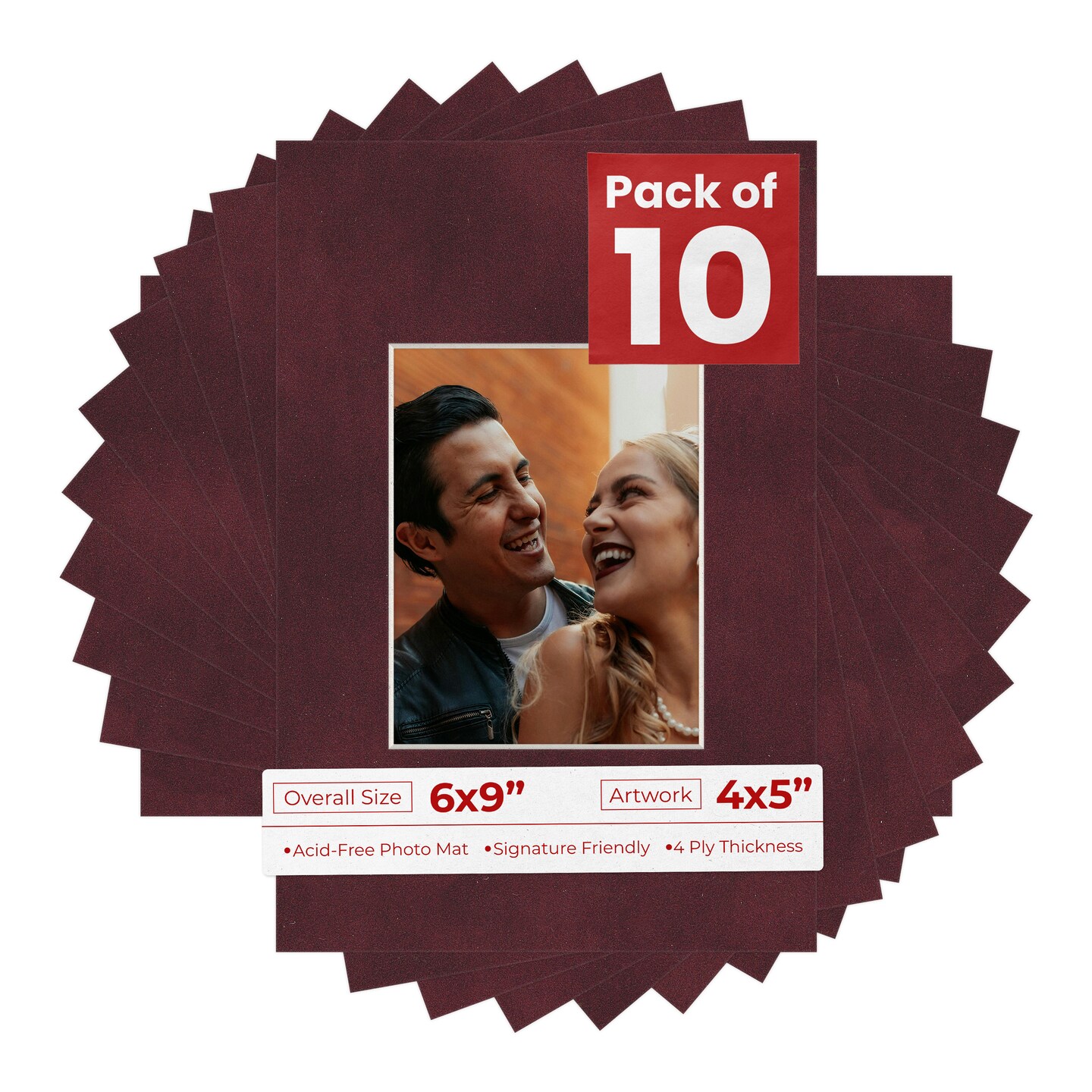 Dark Red Suede Mat Board for 6x9 Frames - Fits 4x5 Photos
