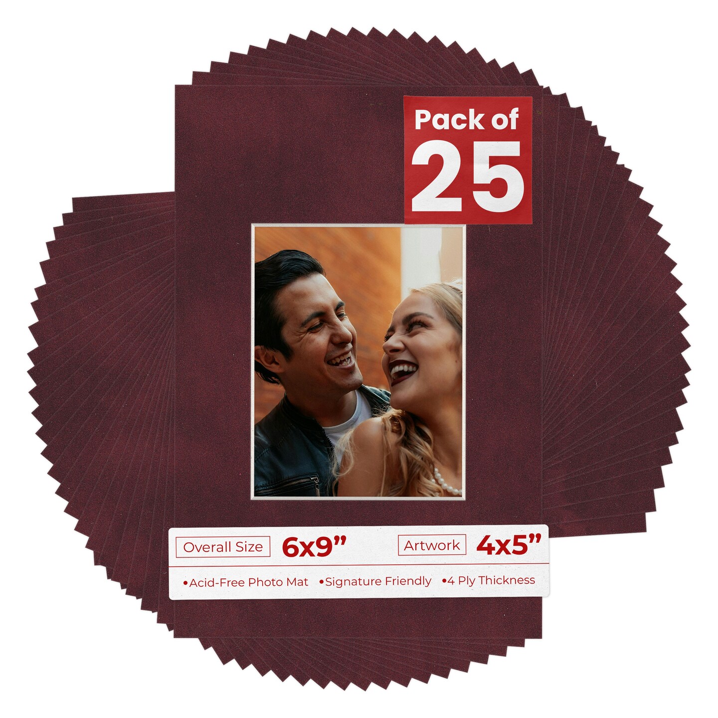Dark Red Suede Mat Board for 6x9 Frames - Fits 4x5 Photos