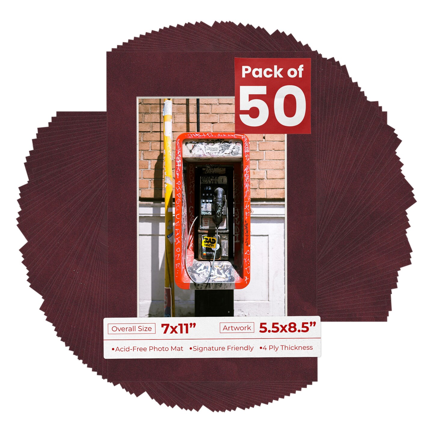 Dark Red Suede Mat Board for 7x11 Frames - Fits 5.5x8.5 Photos