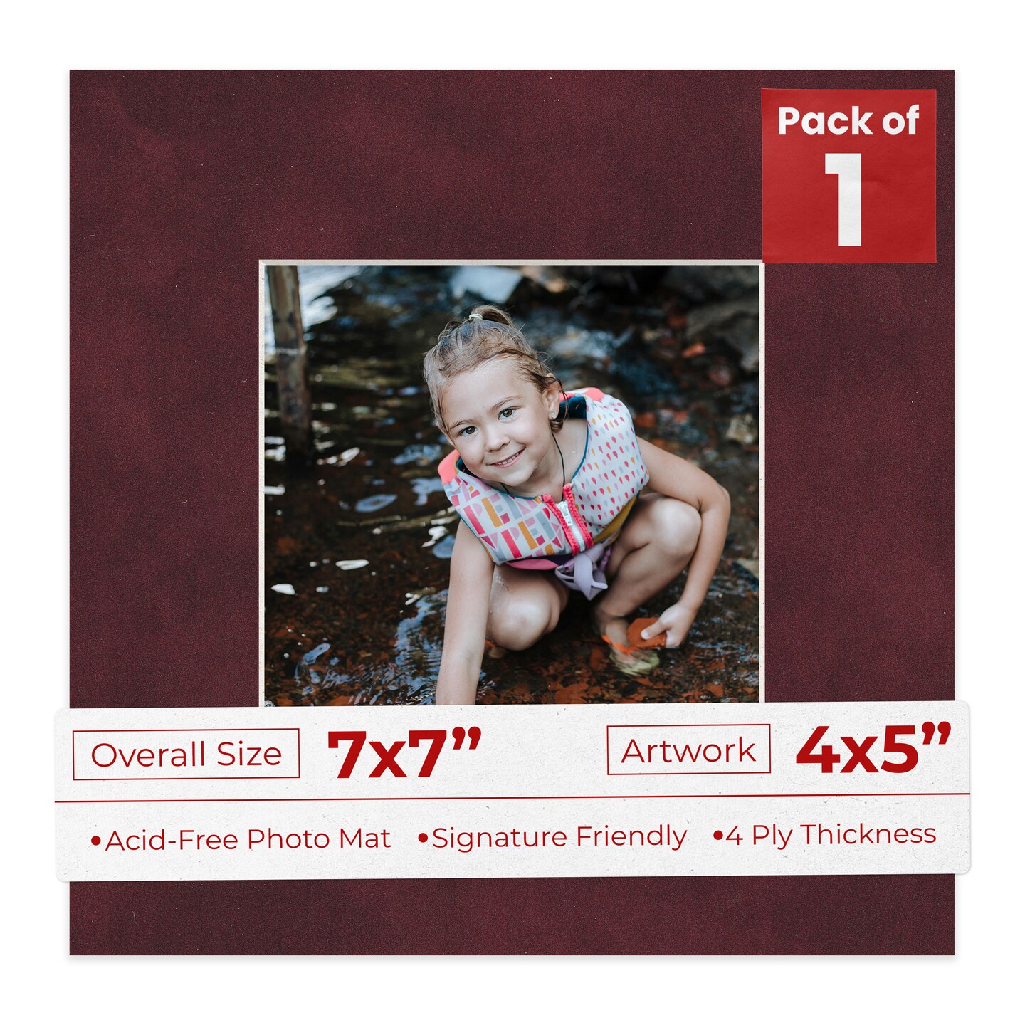 Dark Red Suede Mat Board for 7x7 Frames - Fits 4x5 Photos