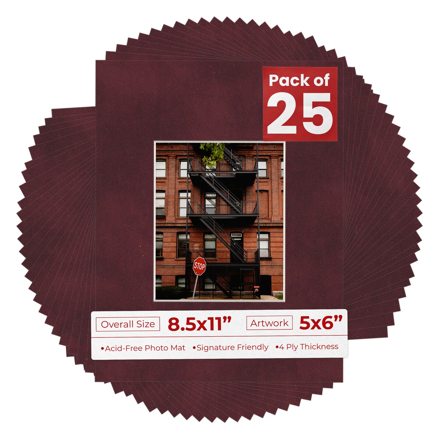 Dark Red Suede Mat Board for 8.5x11 Frames - Fits 5x6 Photos