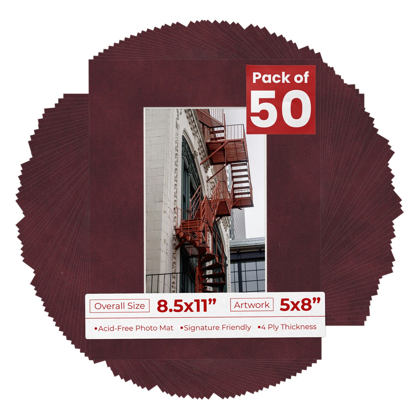 Dark Red Suede Mat Board for 8.5x11 Frames - Fits 5x8 Photos