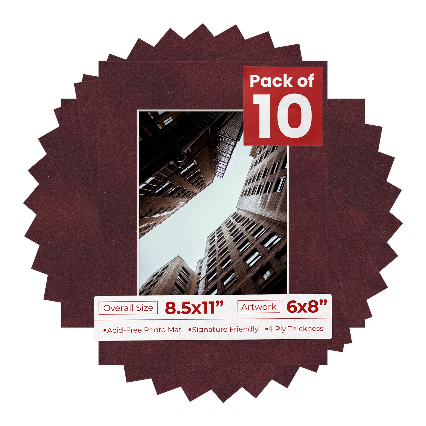Dark Red Suede Mat Board for 8.5x11 Frames - Fits 6x8 Photos