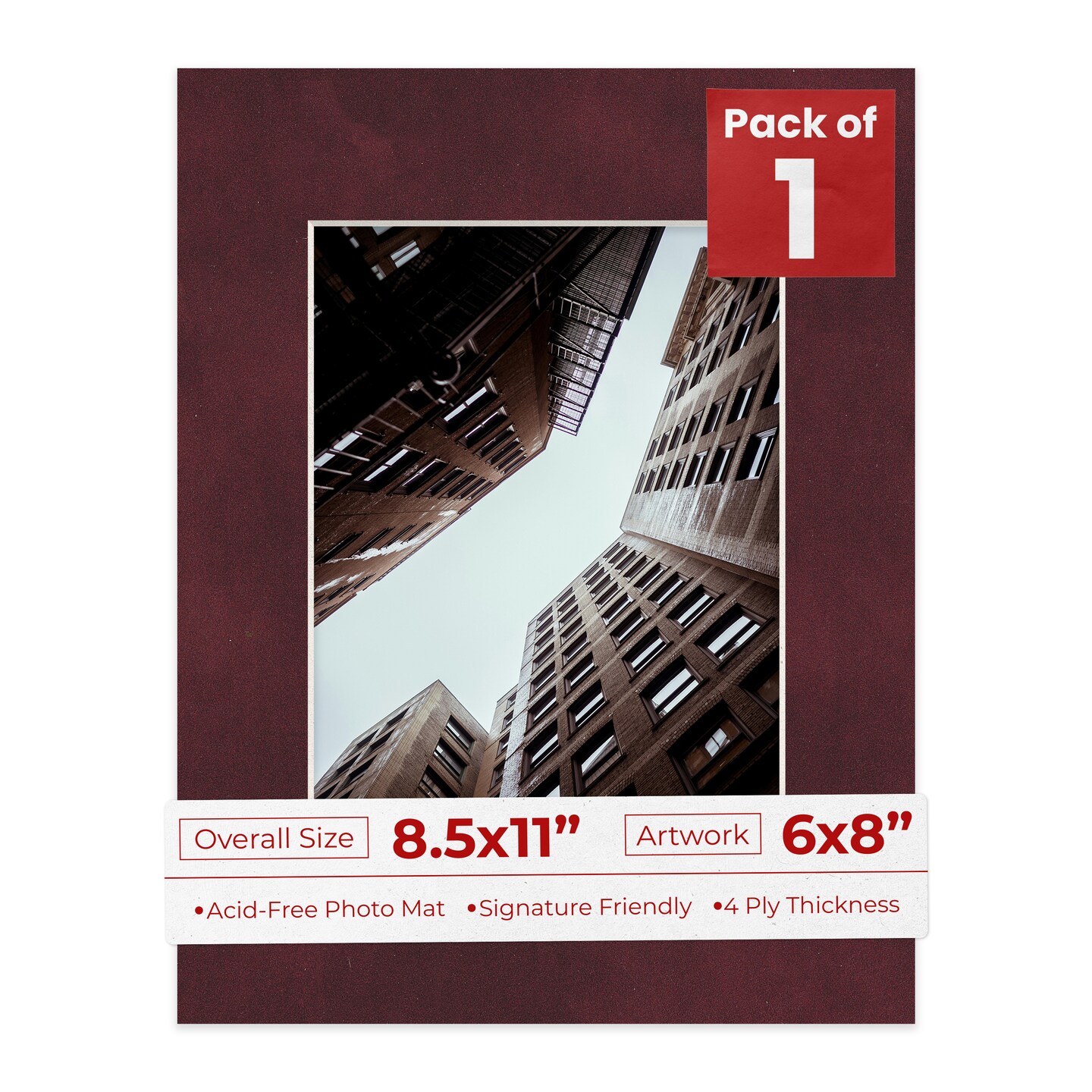 Dark Red Suede Mat Board for 8.5x11 Frames - Fits 6x8 Photos