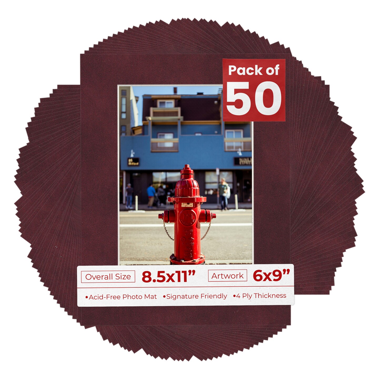 Dark Red Suede Mat Board for 8.5x11 Frames - Fits 6x9 Photos
